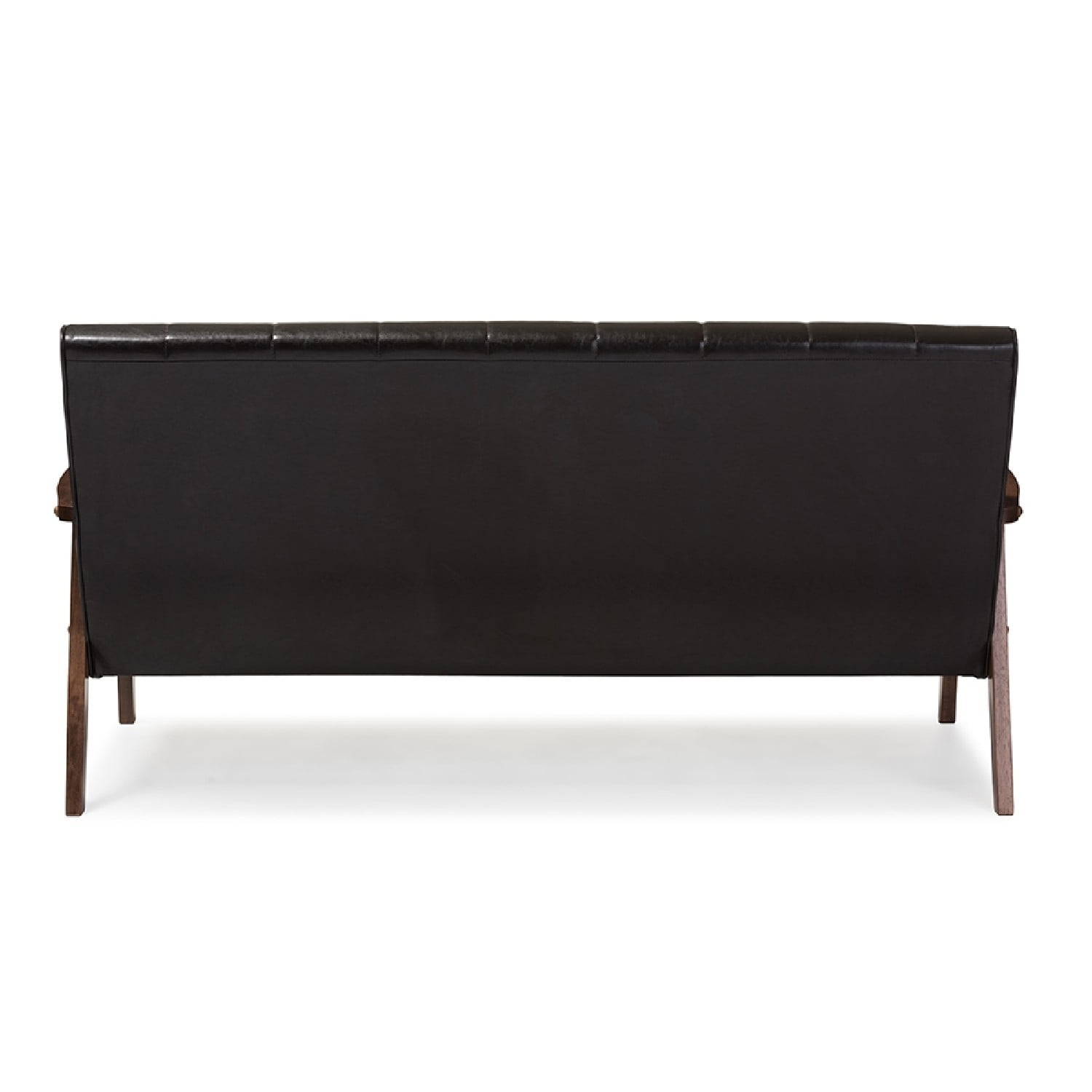 Baxton Studio Nikko Mid-century Modern Scandinavian Style Dark Brown Faux Leather Wooden 3-Seater Sofa