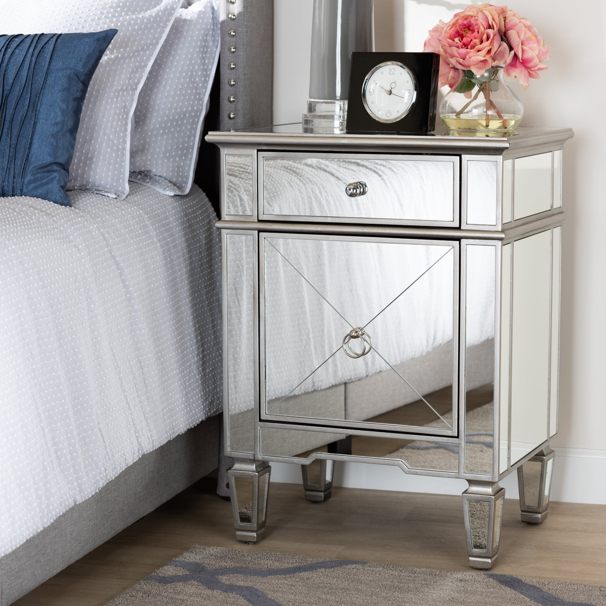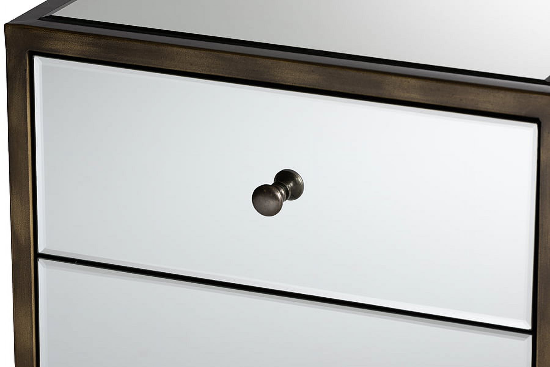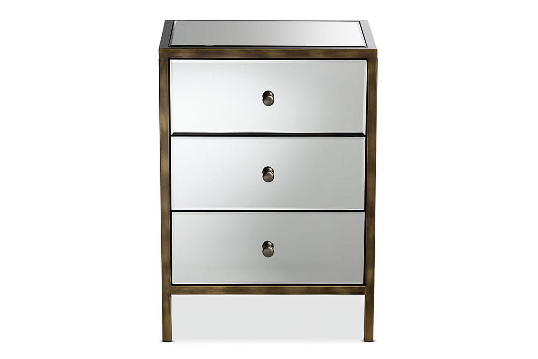 Baxton Studio Nouria Modern and Contemporary Hollywood Regency Glamour Style Mirrored 3-Drawer Nightstand Bedside Table