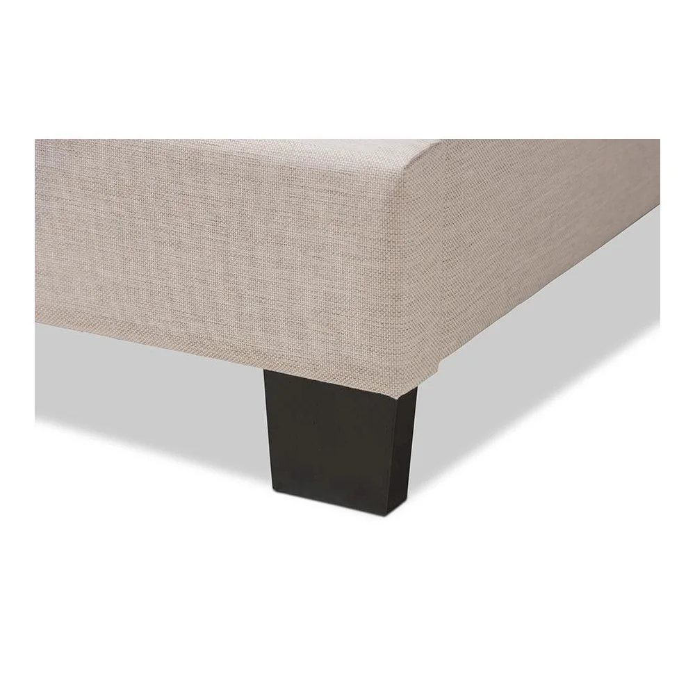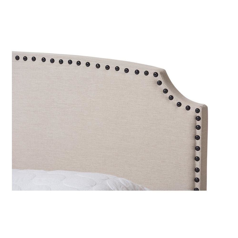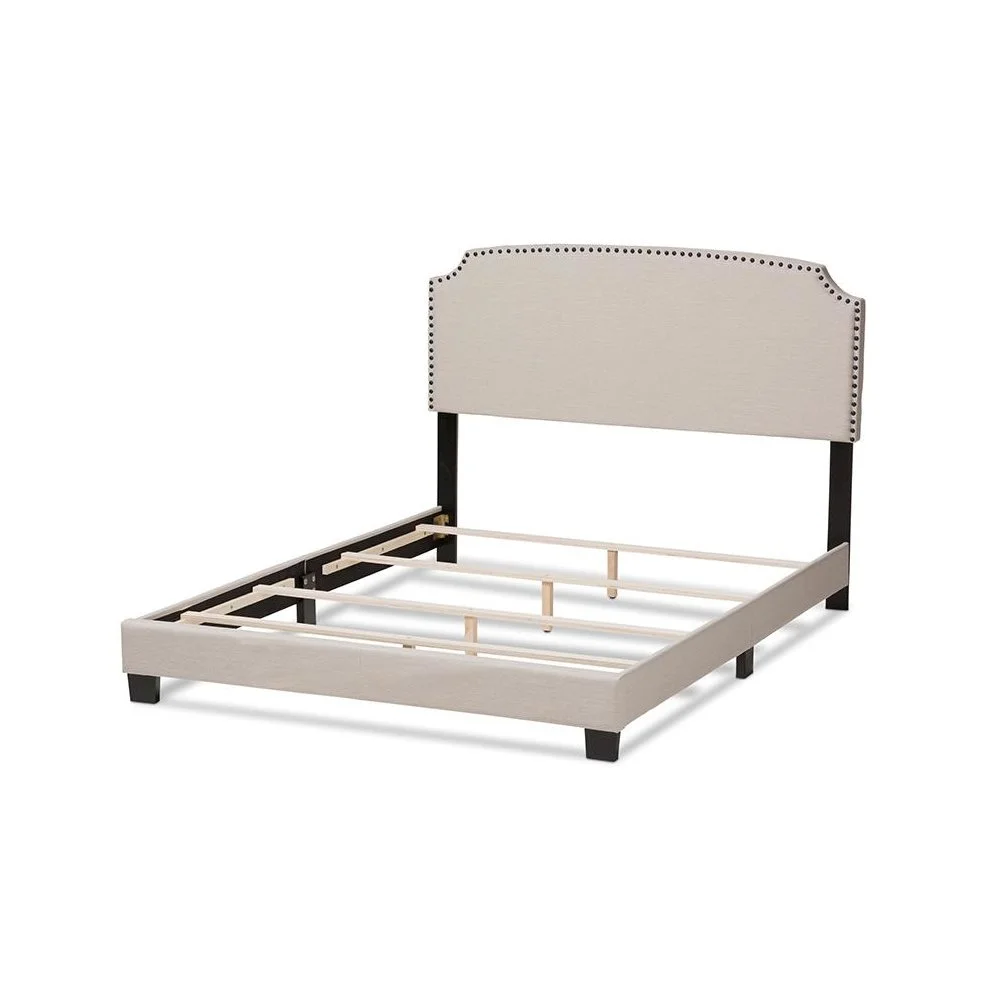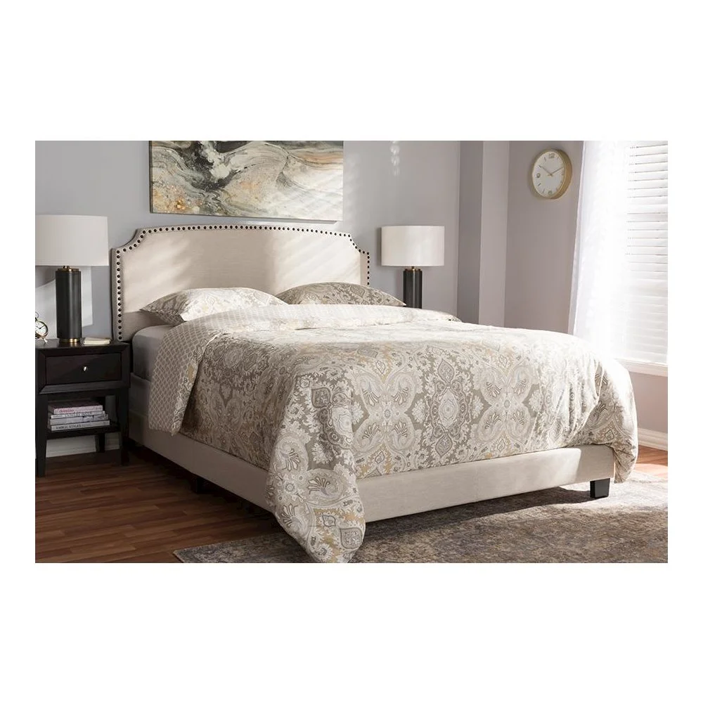 Baxton Studio Odette Full Size Curvaceous Standard Beds, Light Beige Modern and contemporary design Light beige fabric upholstery for a neutral look Solid rubberwood legs for durability Curvaceous headboard with stylish nailhead trim Requires box spring for optimal support