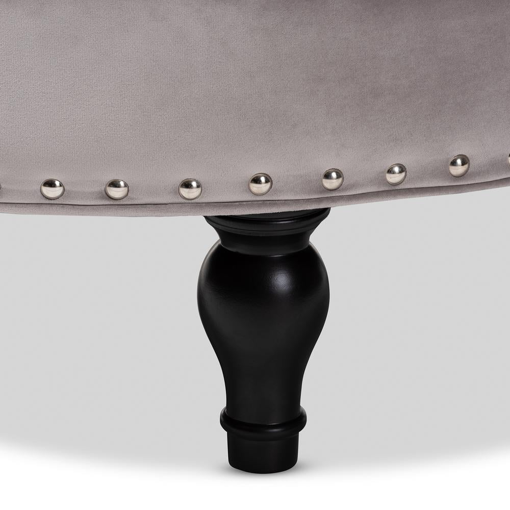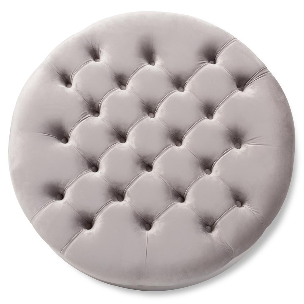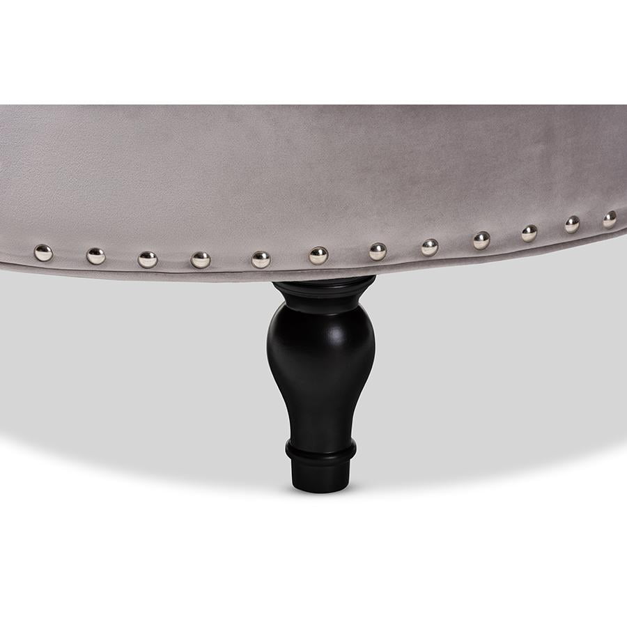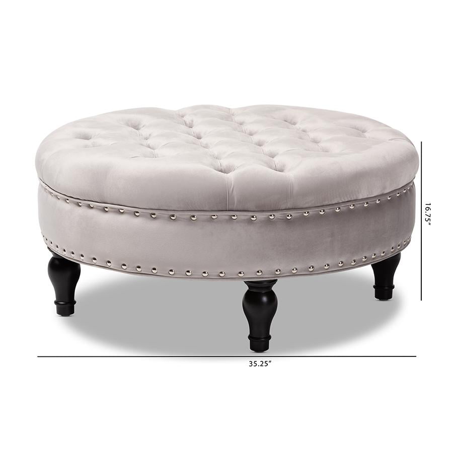 Transitional cocktail ottoman Constructed from eucalyptus wood Upholstered in velvet polyester fabric Button tufted Black-finished wood legs with non-marking feet Leg assembly required Made in China
