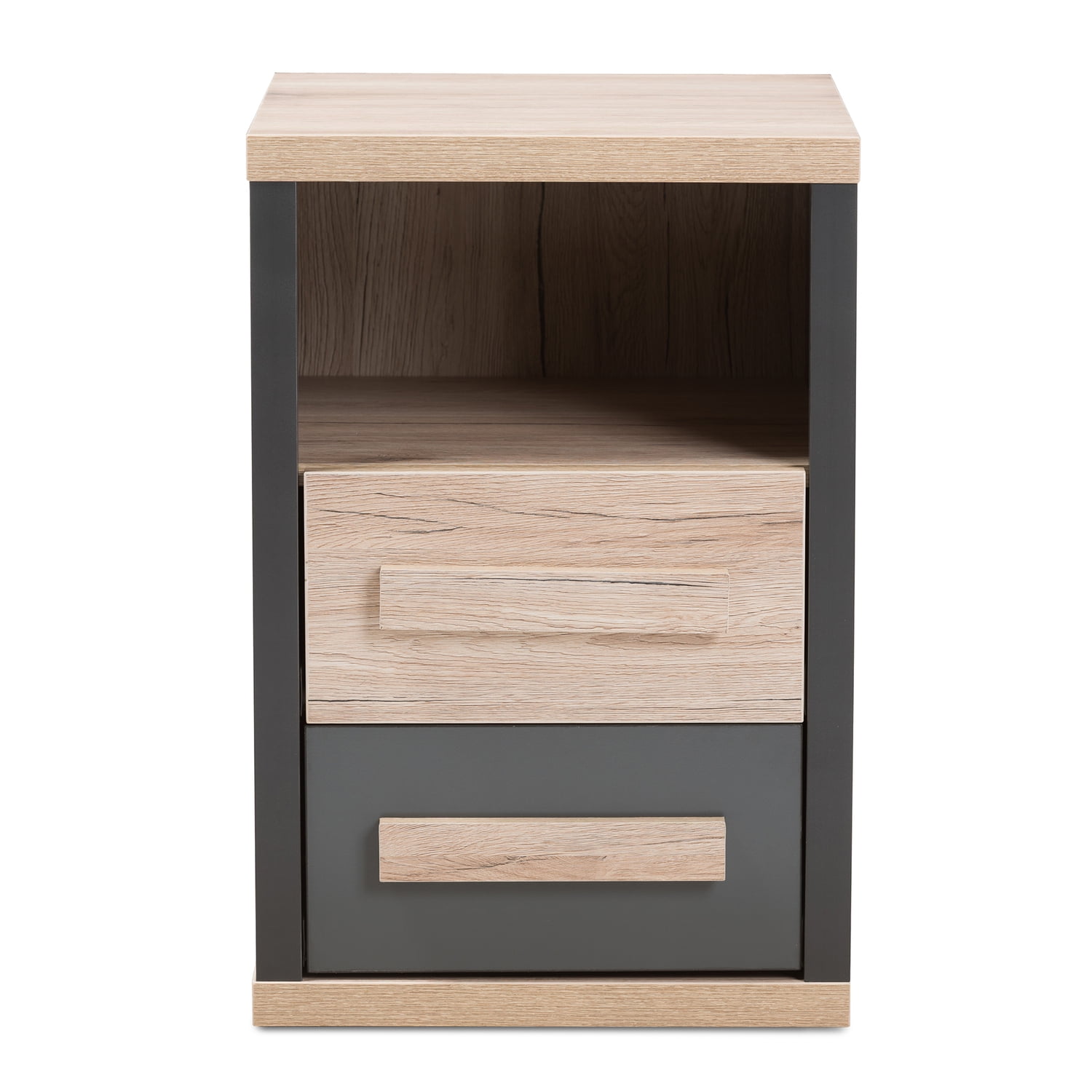 Baxton Studio Pandora Modern and Contemporary Dark Grey and Light Brown Two-Tone 2-Drawer Nightstand