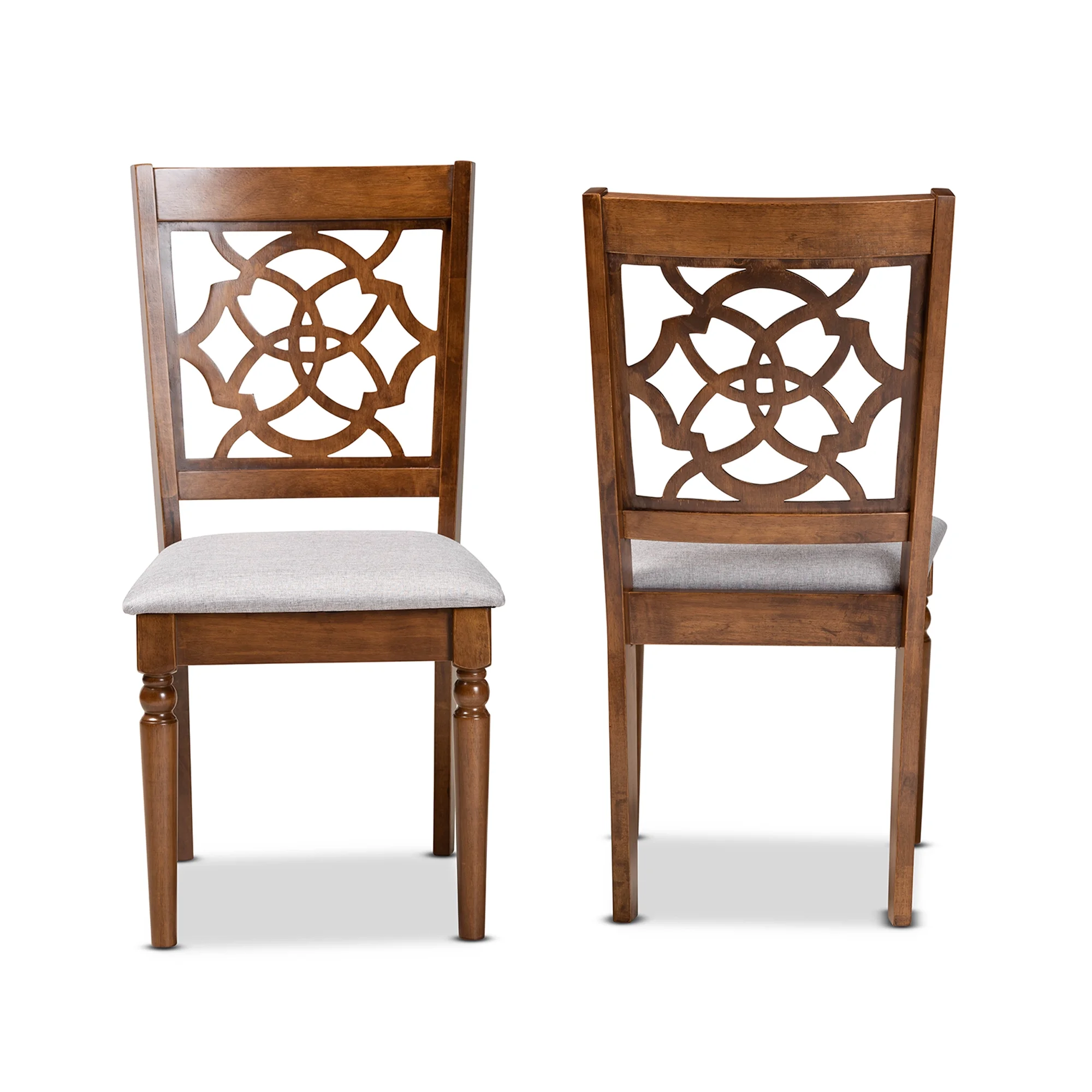 Baxton Studio Renaud Modern and Contemporary Grey Fabric Upholstered and Walnut Brown Finished Wood 2-Piece Dining Chair Set