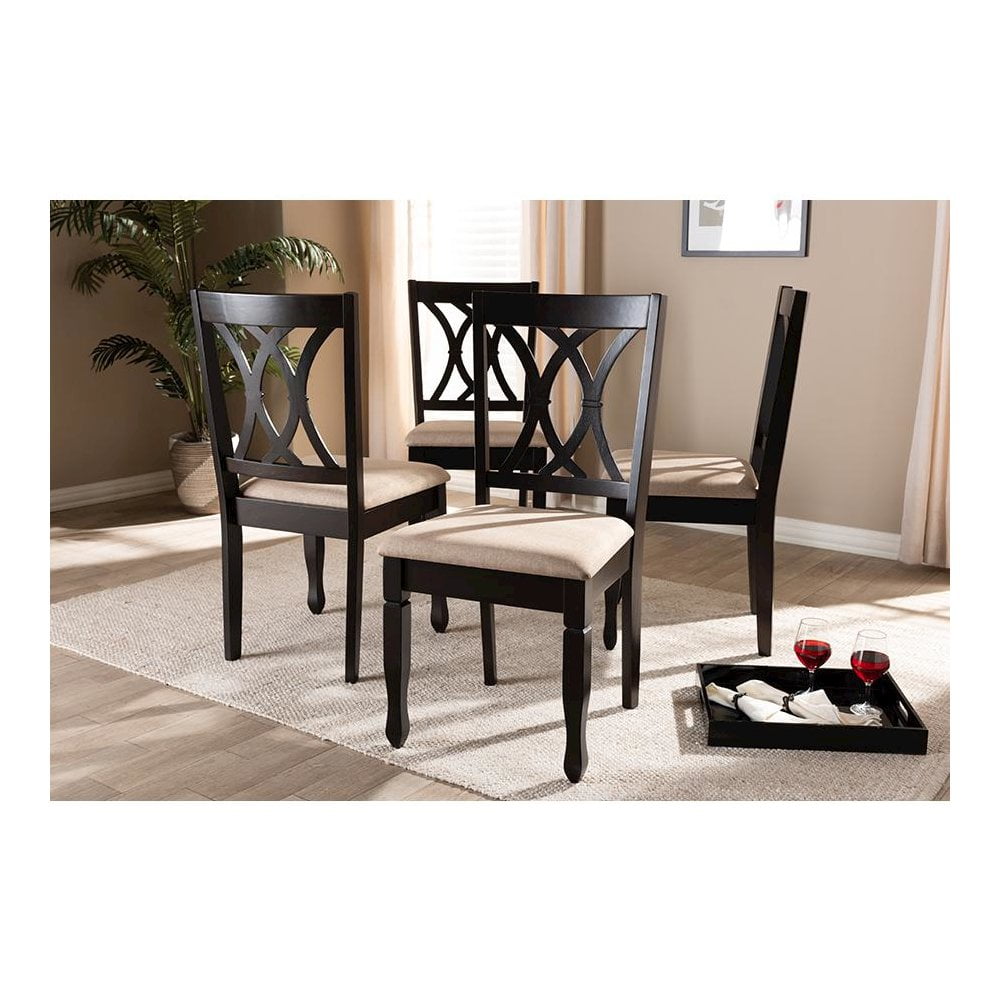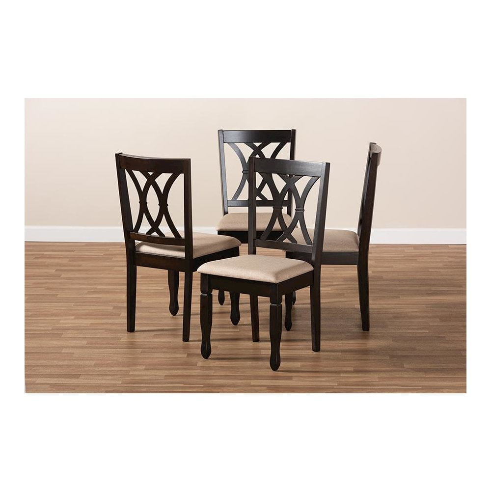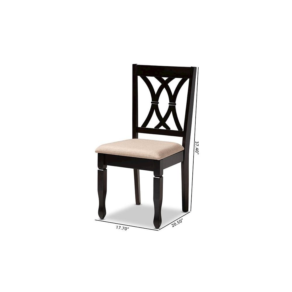 Featuring an exquisitely crafted frame, the Reneau dining chair adds elegance to any dining space. This solid rubberwood chair displays a sleek espresso brown finish that complements the light polyester fabric upholstery. Designed to add both comfort and style to your dining space, the chair features a plush foam-padded seat, as well as a stunning cut-out design on its back. Tapered feet add a classic, refined touch. Built for long dinners with family and friends, the Reneau is sure to enhance any dining experience. The Reneau dining chair is made in Malaysia and requires assembly. Dimensions: 37.4″ High x 17.7″ Wide x 20.5″ Deep; Seating Dimensions: 18.5″ High (from Floor) x 18.5″ Wide x 16.1″ Deep; Back: 18.9″ High; Legs: 16.9″ High