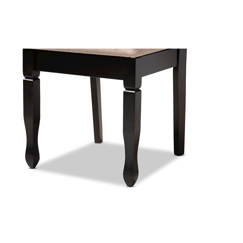 Modern and contemporary dining chair Constructed from rubberwood Espresso brown finish Polyester fabric upholstery Cut-out back design Assembly required Made in Malaysia