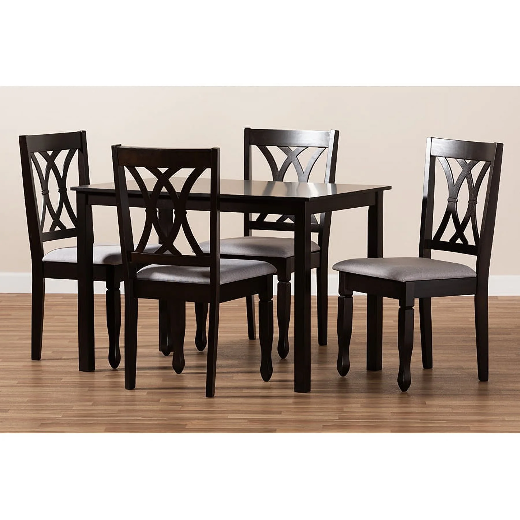 Baxton Studio Reneau Modern and Contemporary Gray Fabric Upholstered Espresso Brown Finished Wood 5-Piece Dining Set
