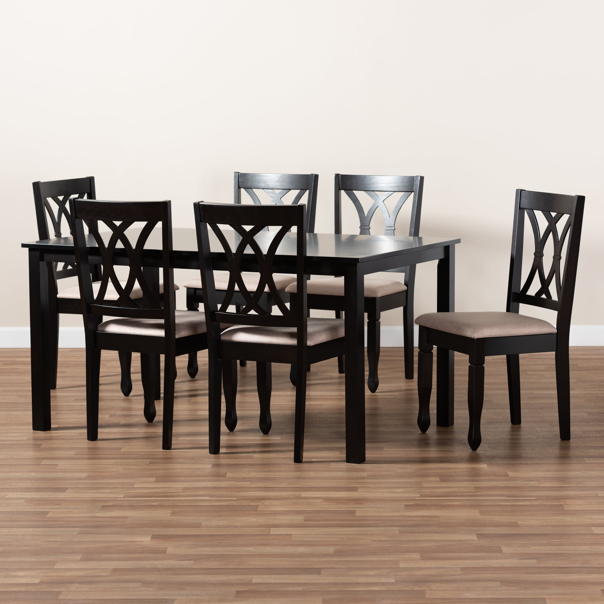 Baxton Studio Reneau Modern and Contemporary Sand Fabric Upholstered Espresso Brown Finished Wood 7-Piece Dining Set