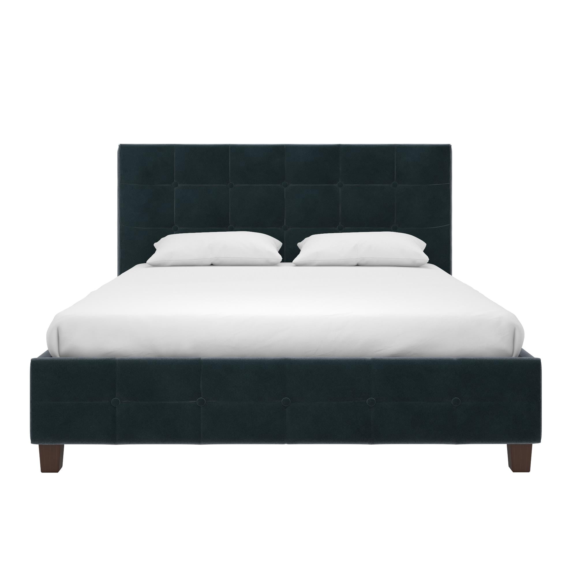 Baxton Studio Sante Full Mid Century Wooden Platform Bed with Button Tufted Headboard, Gray Constructed from solid rubberwood, MDF wood, and LVL Upholstered in durable polyester fabric and padded with foam Features walnut brown-finished rubberwood legs Low platform design elevated by stylish angled legs Elegant fabric upholstered headboard with a single row of button tufting Requires assembly