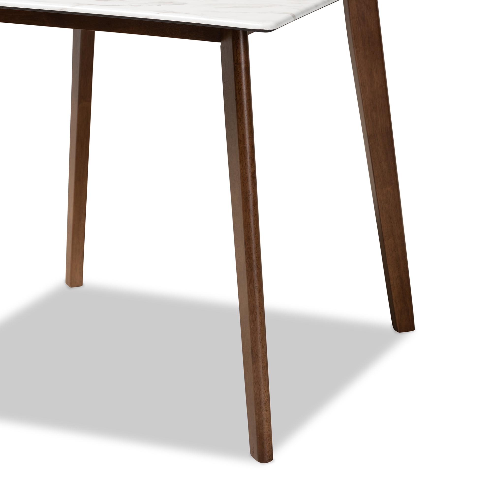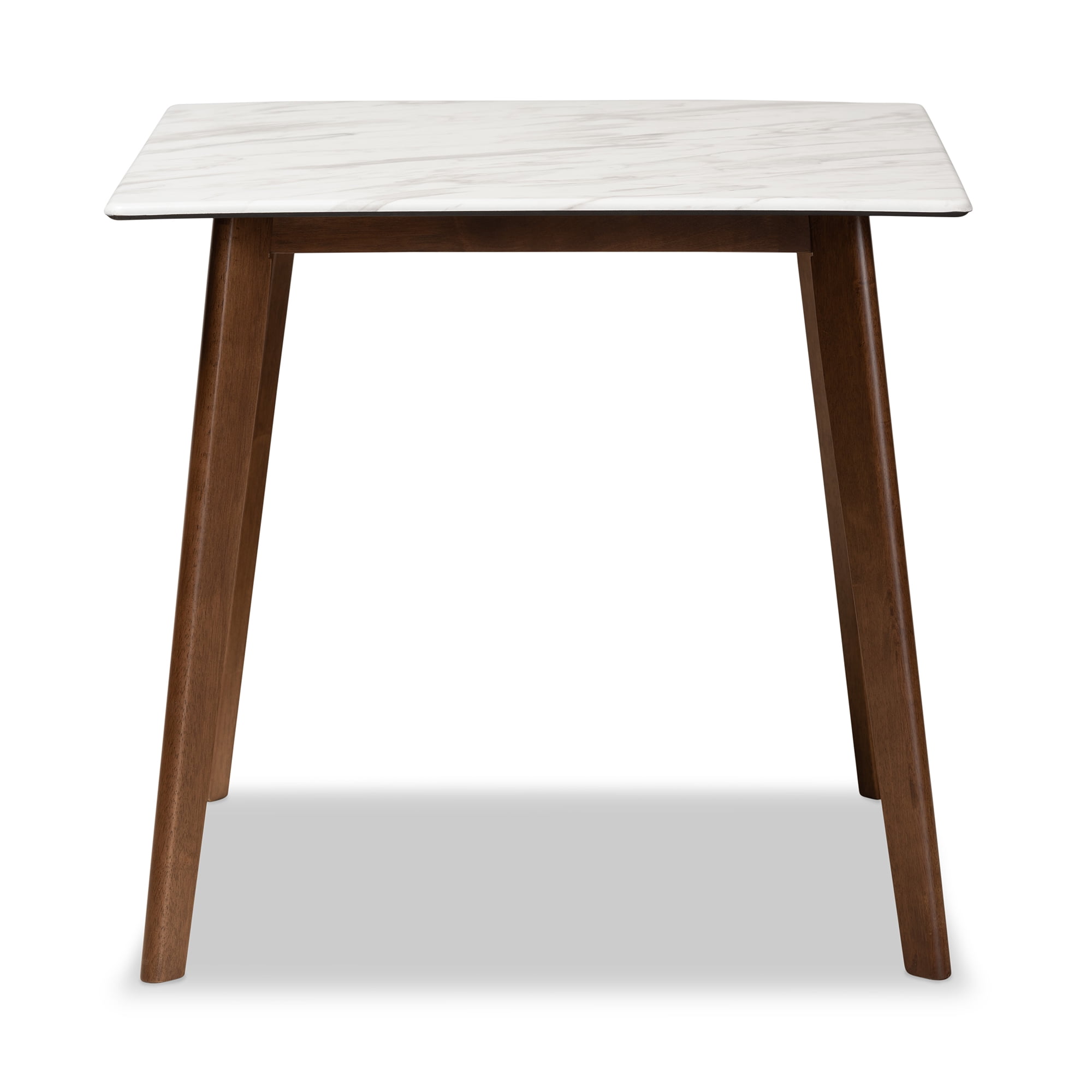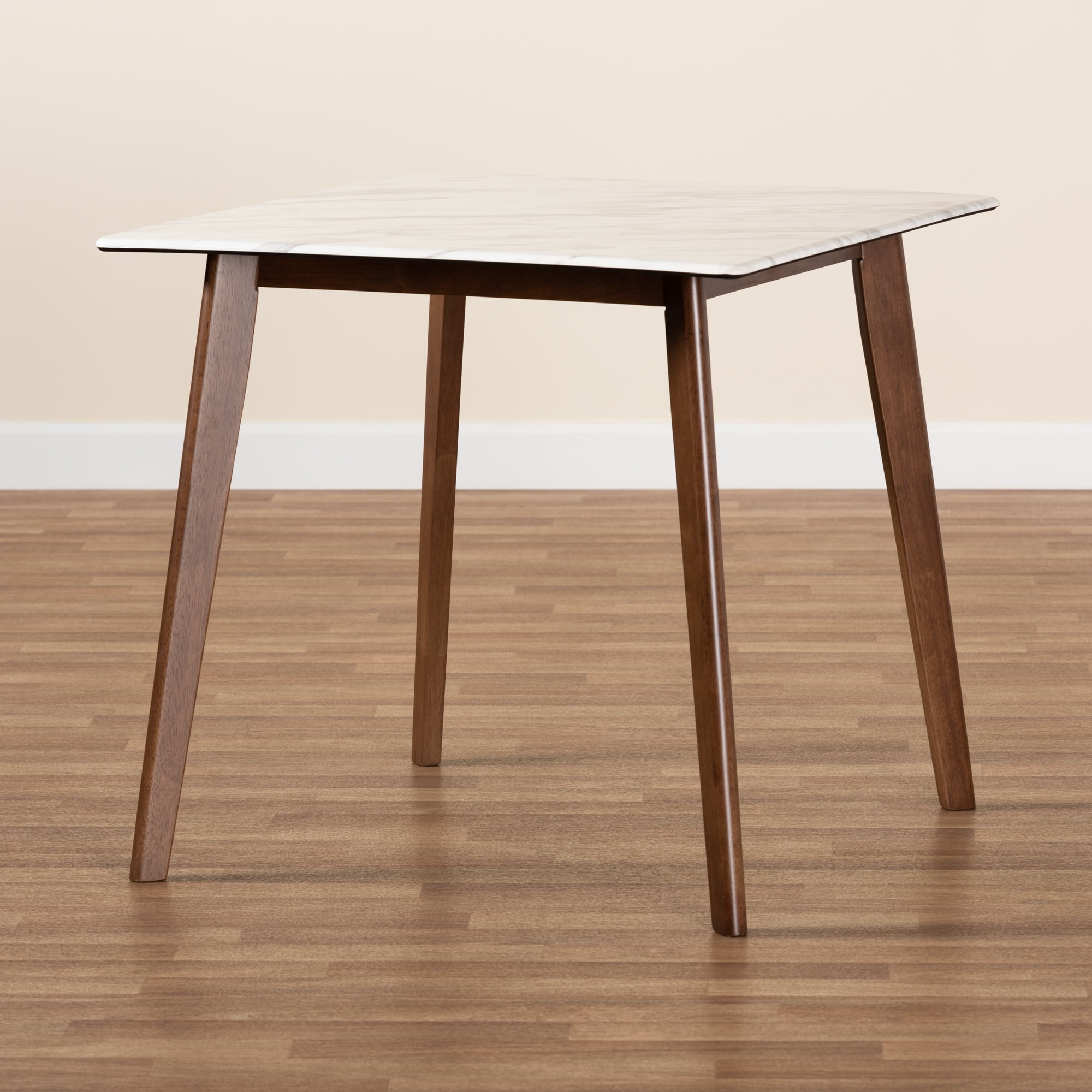 Baxton Studio Select Indoor Mid-Century Square Marble Dining Table, Walnut Brown/White