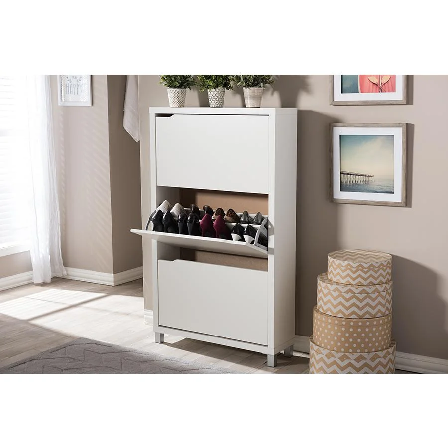 Baxton Studio Simms 3 Storage White Modern Shoe Cabinet