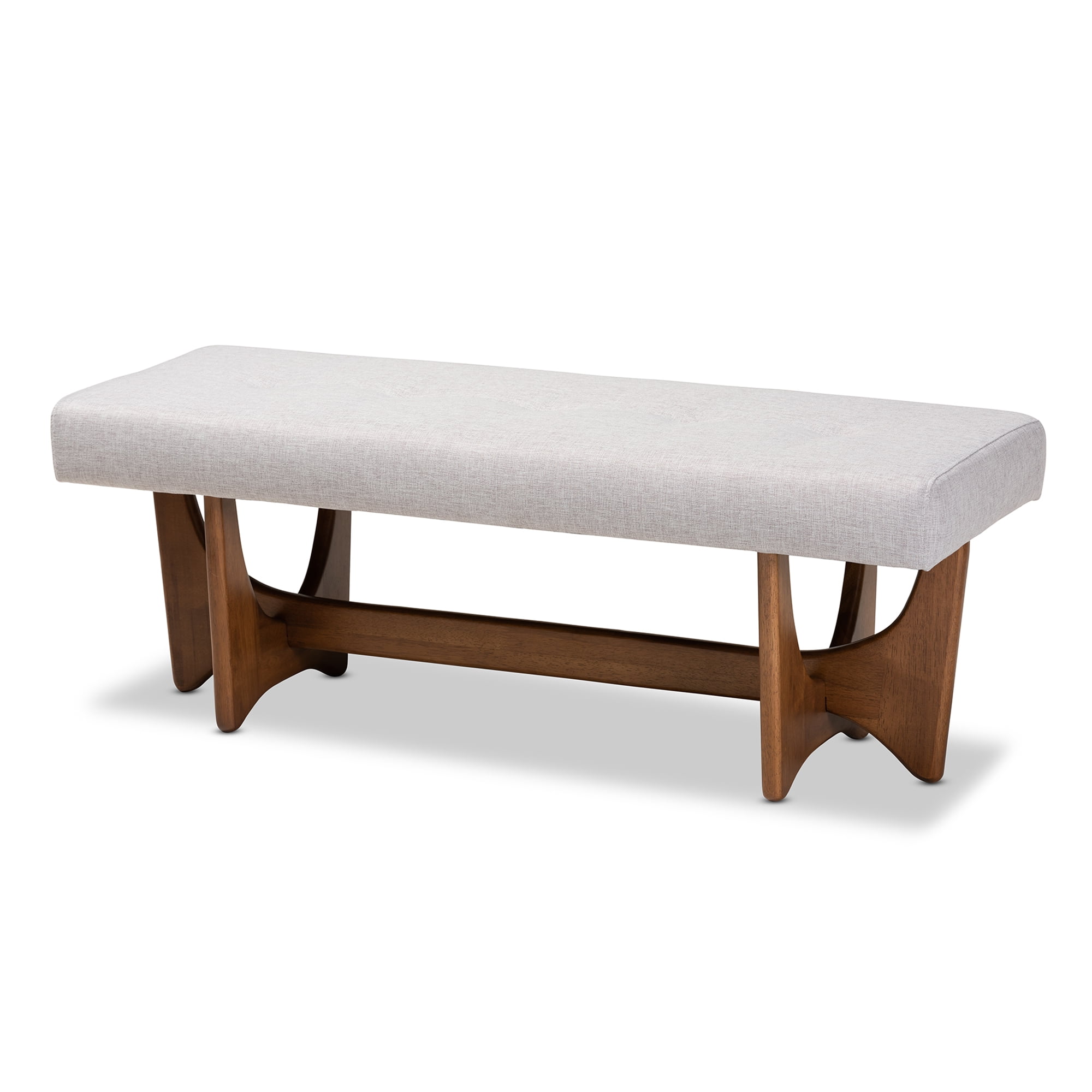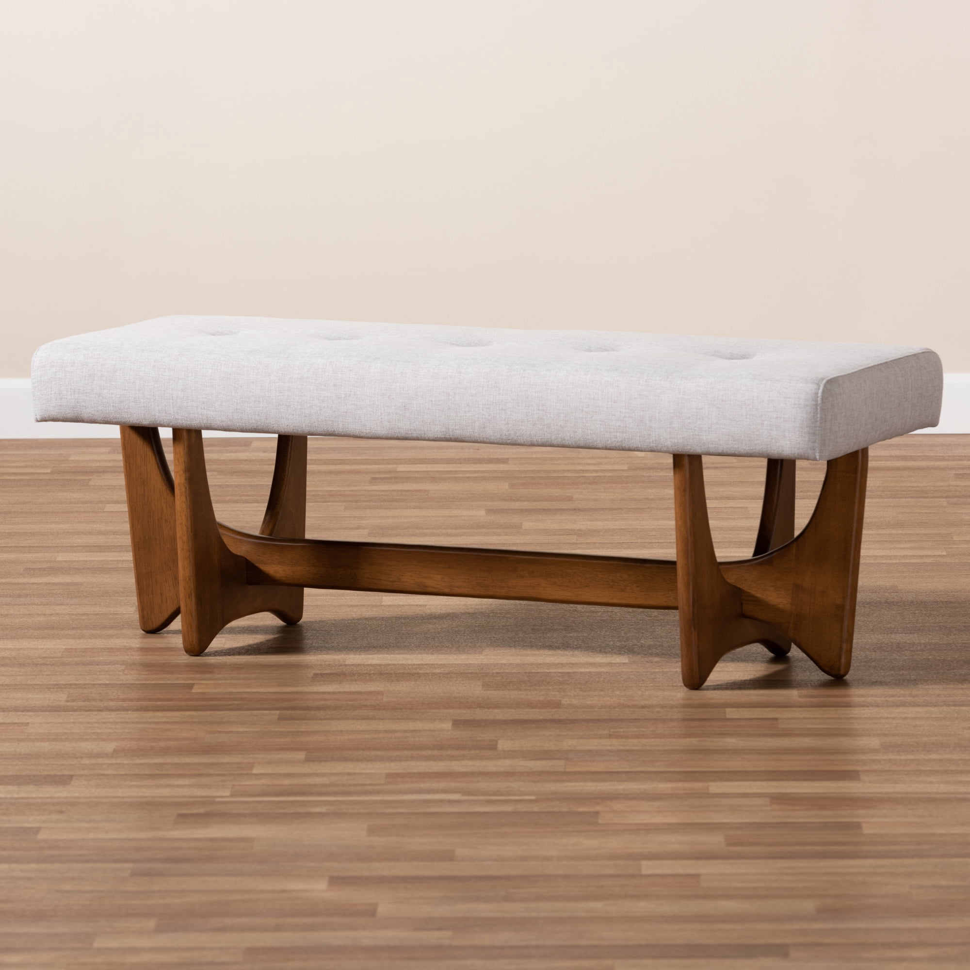 Baxton Studio Theo Mid-Century Modern Grayish Beige Fabric Upholstered Walnut Finished Bench