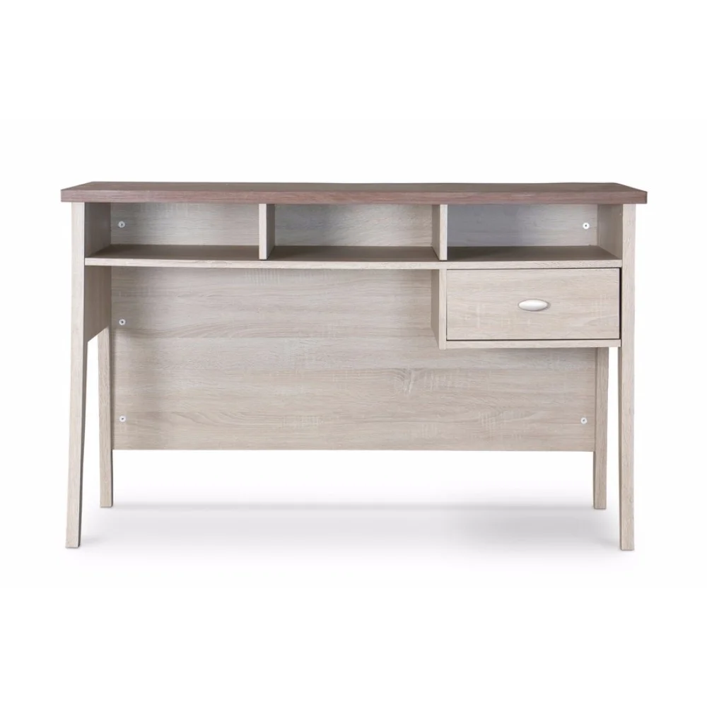Contemporary writing desk Stylish, practical design Fronted drawer and three open storage spaces Engineered wood construction