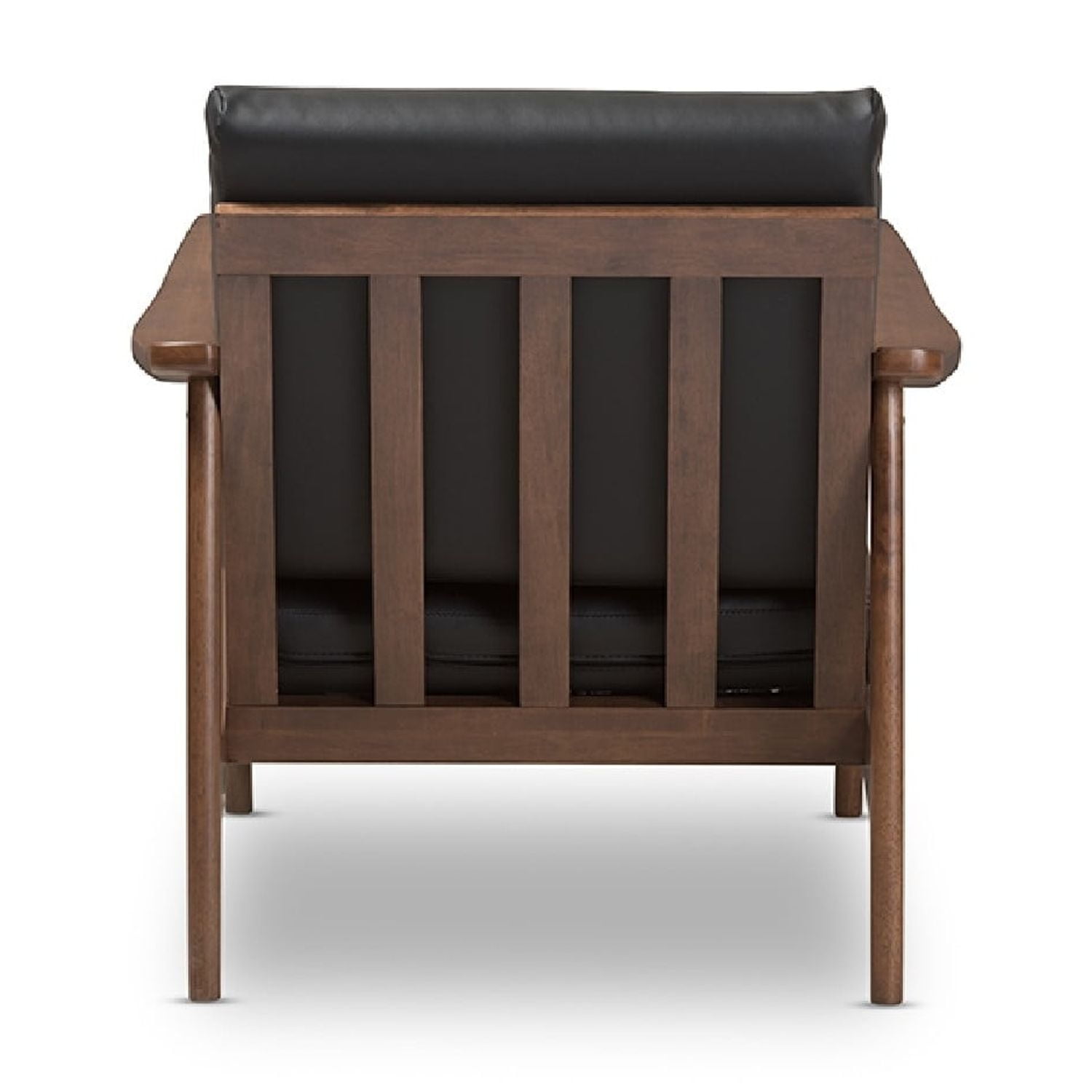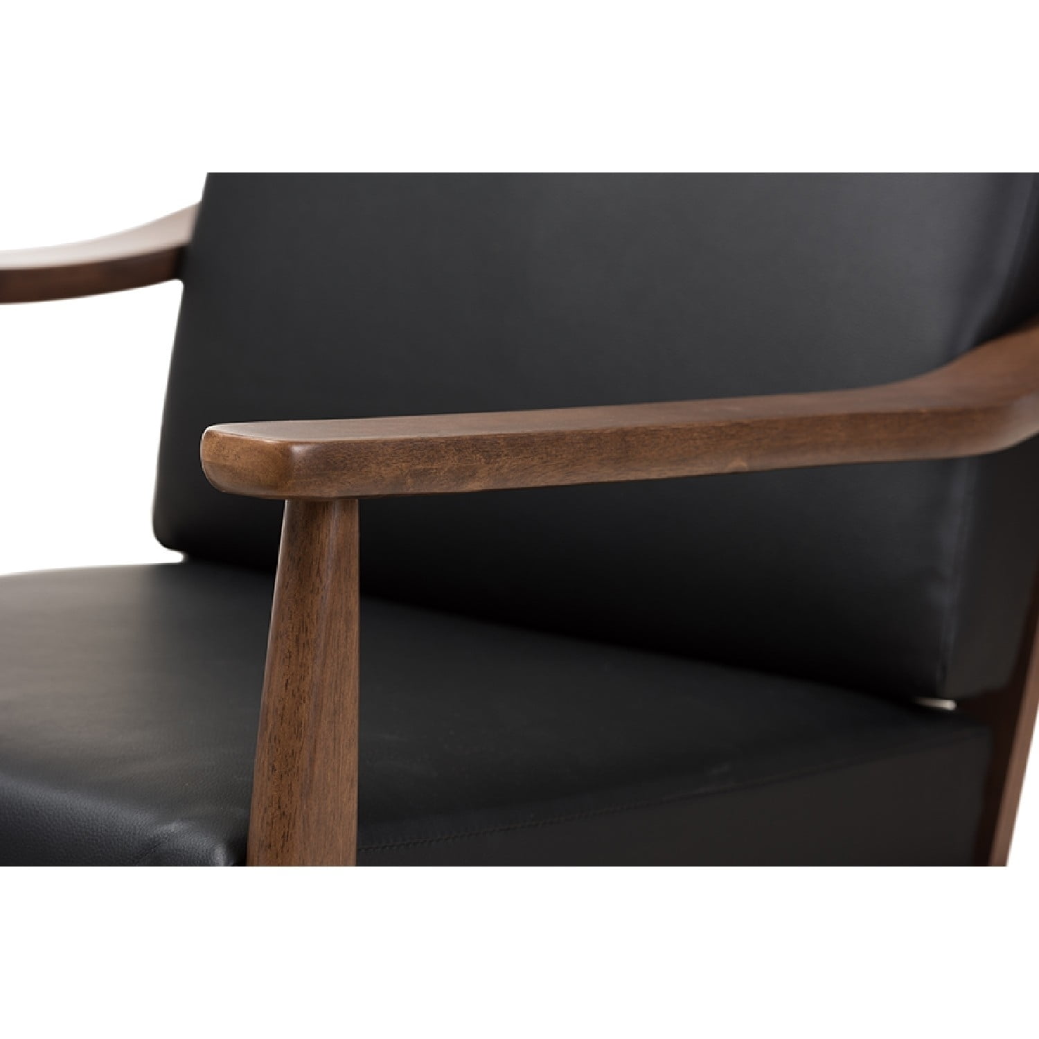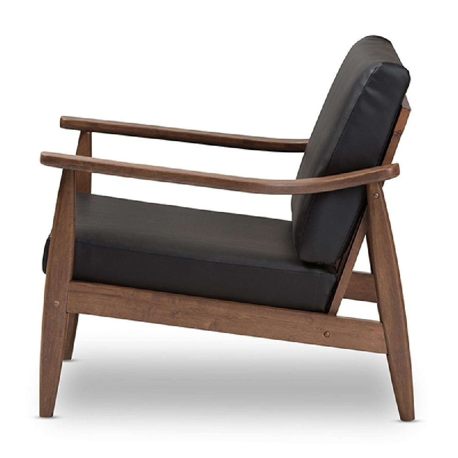 Look forward to unwinding after a long day, with the casual and relaxing design of the Venza 1-seater lounge chair. Constructed of solid rubber wood frame for strength and long-lasting durability, this mid-century modern-inspired armchair is built with clean paneled lines on the back, bringing relaxing vibes into your living room and complementing your home with lavish style. Cushions are upholstered in a soft but resilient black faux leather for plush comfort and lasting good looks. Featuring splayed legs with sloping arms for a mix of minimalist and contemporary styling in your space, the Venza is perfect as a lounge chair or an occasional chair in your living area, bedroom, or in a lounge arrangement, public waiting area or private office. Made in Malaysia, the Venza requires assembly. Features: Finish: Black and Brown Material: Faux Leather, Rubber Wood Mid-century retro modern 1-seater lounge chair Removable cushions in faux leather Sloping armrests with splayed legs Specifications: Product Dimensions: 29.53” H x 27.95” W x 33.07” D Product Weight: 25.35 lbs