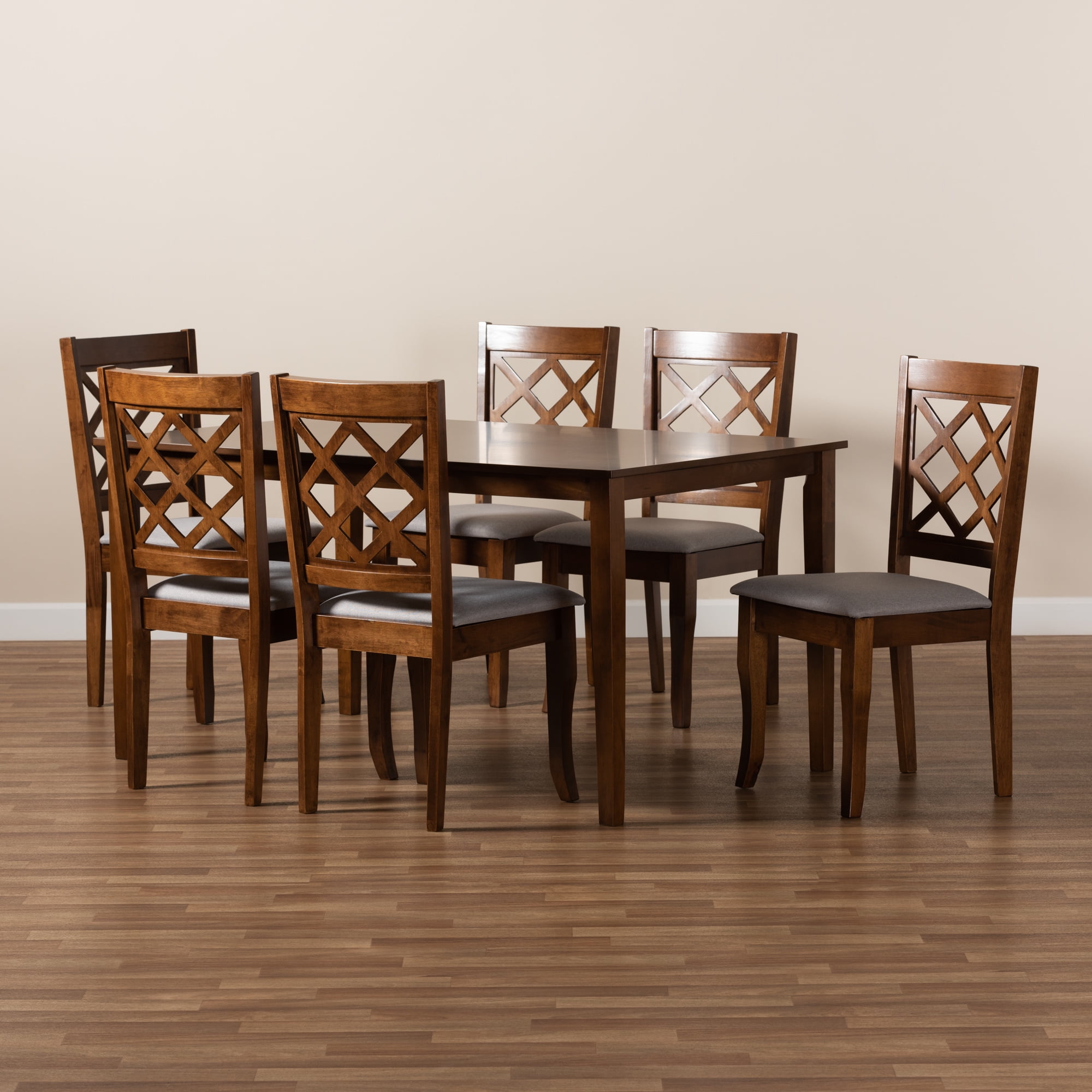 Baxton Studio Verner Modern and Contemporary Grey Fabric Upholstered and Walnut Brown Finished Wood 7-Piece Dining Set