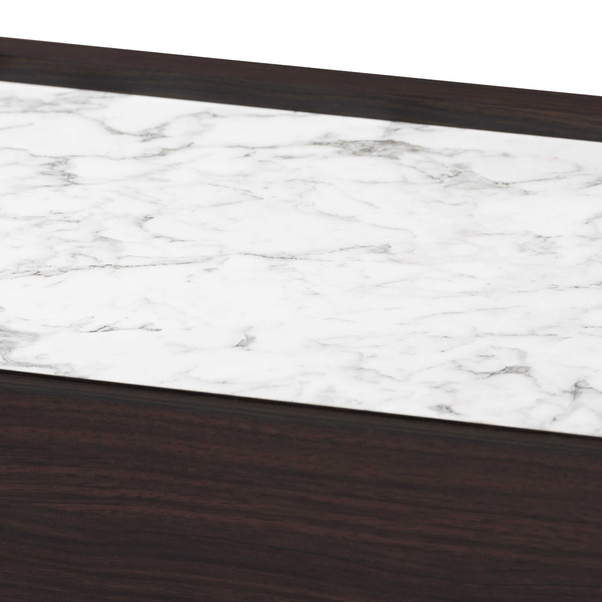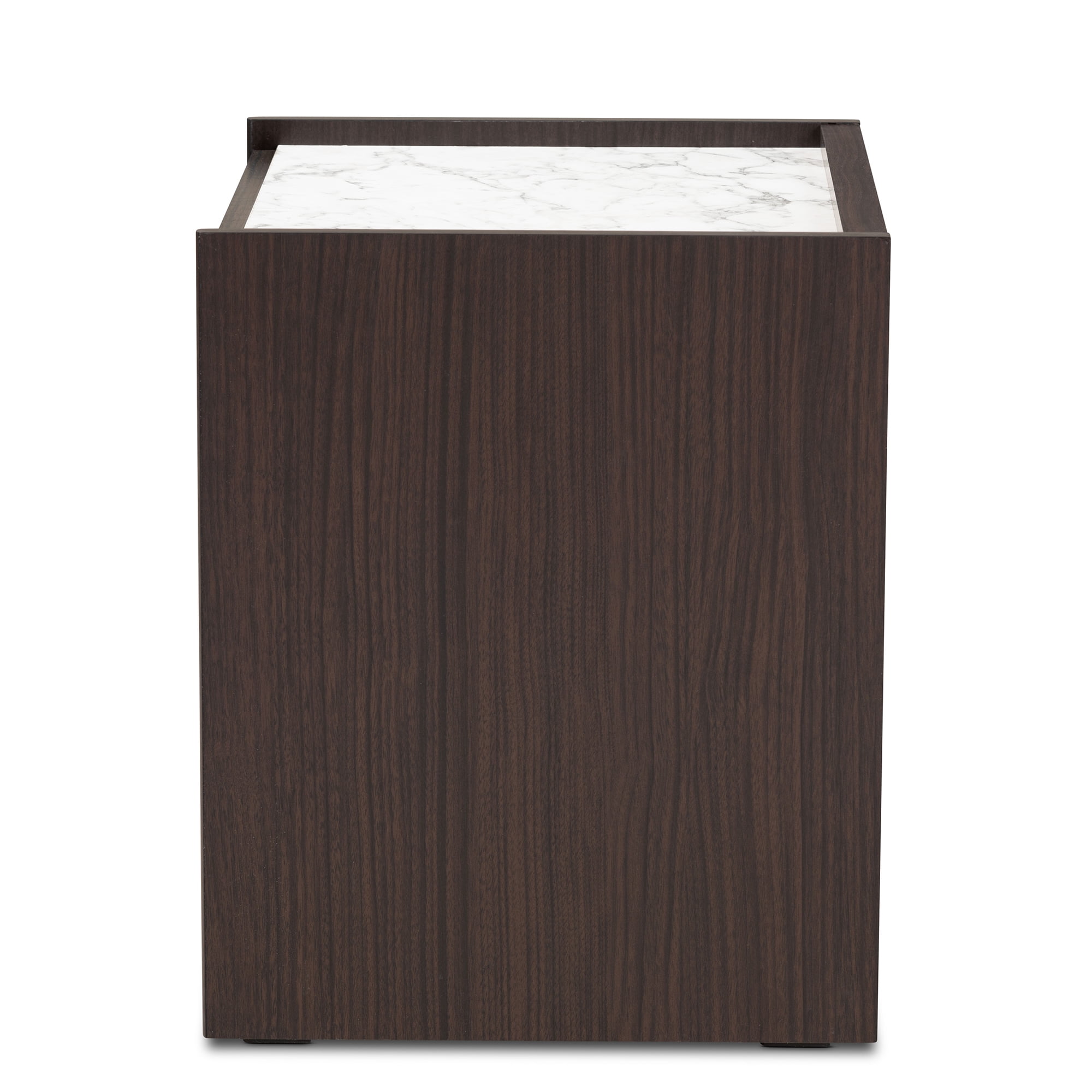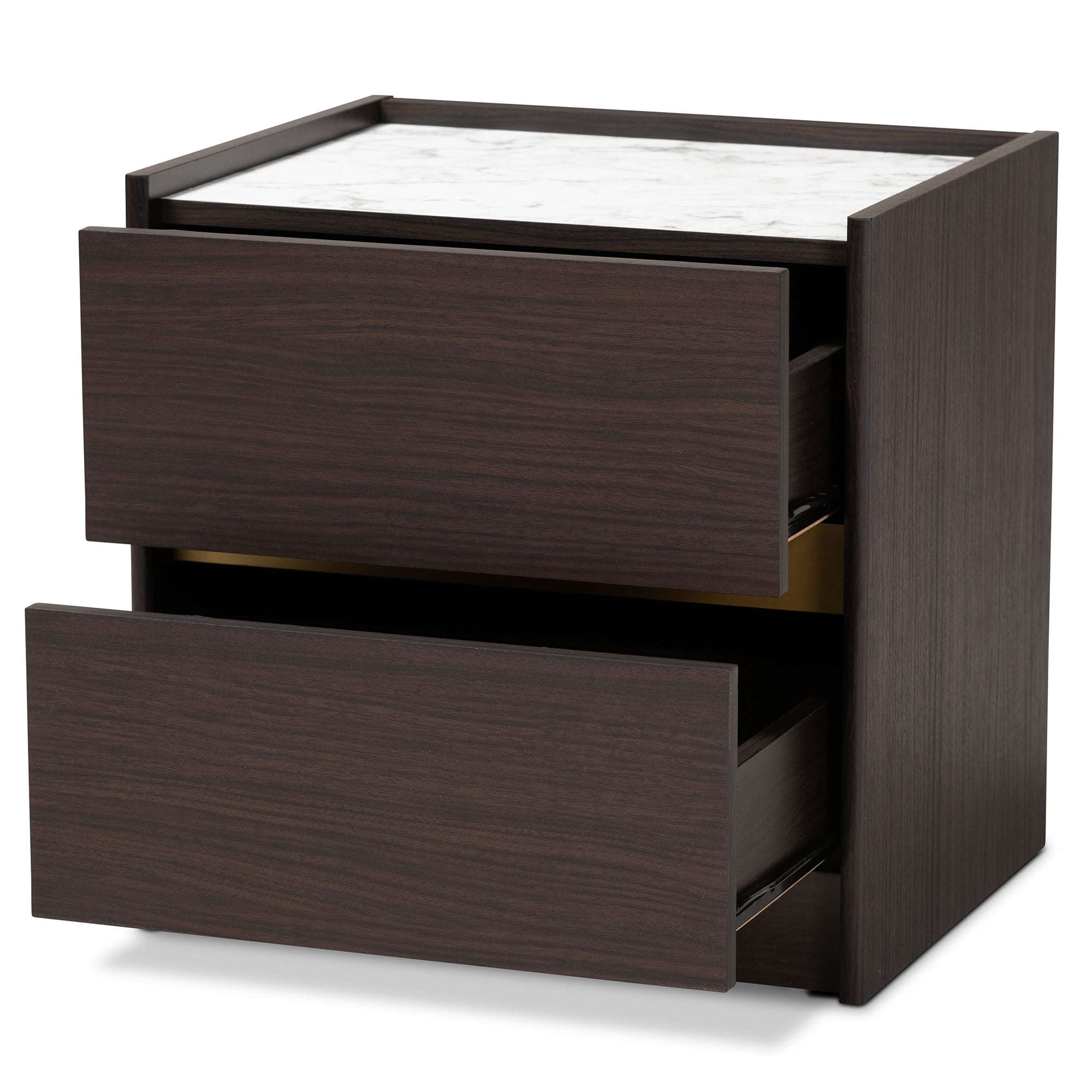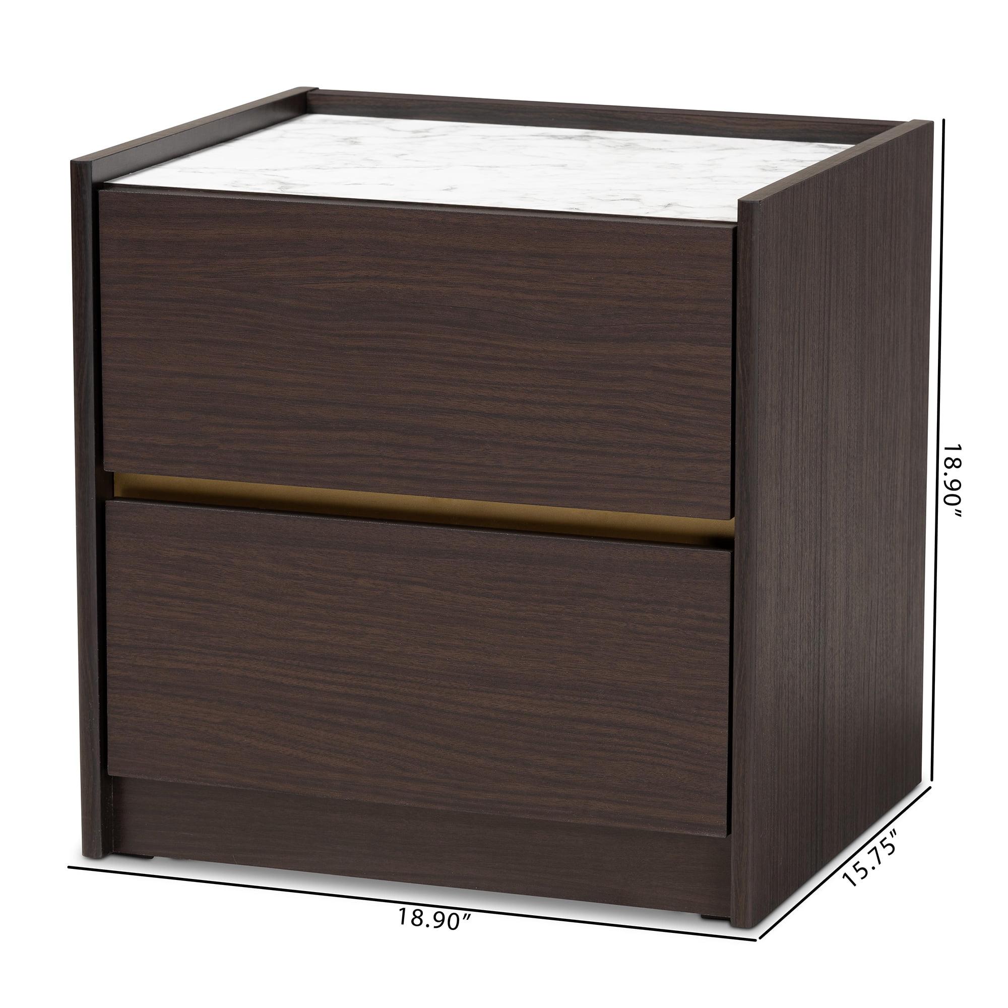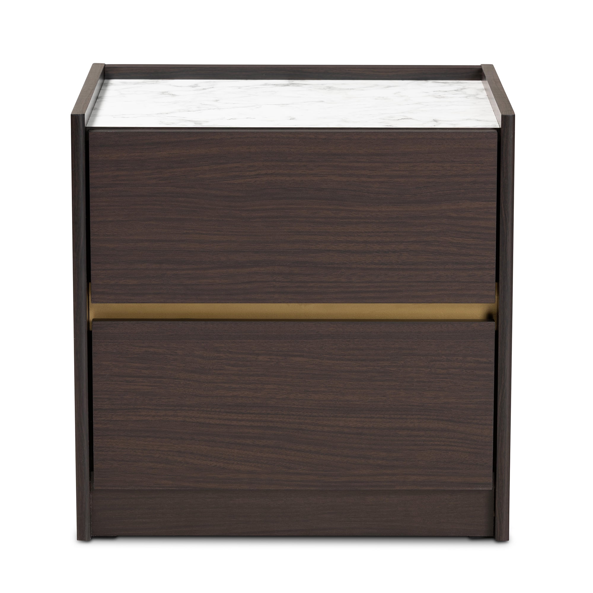 Baxton Studio Walker Modern and Contemporary Dark Brown and Gold Finished Wood Nightstand with Faux Marble Top