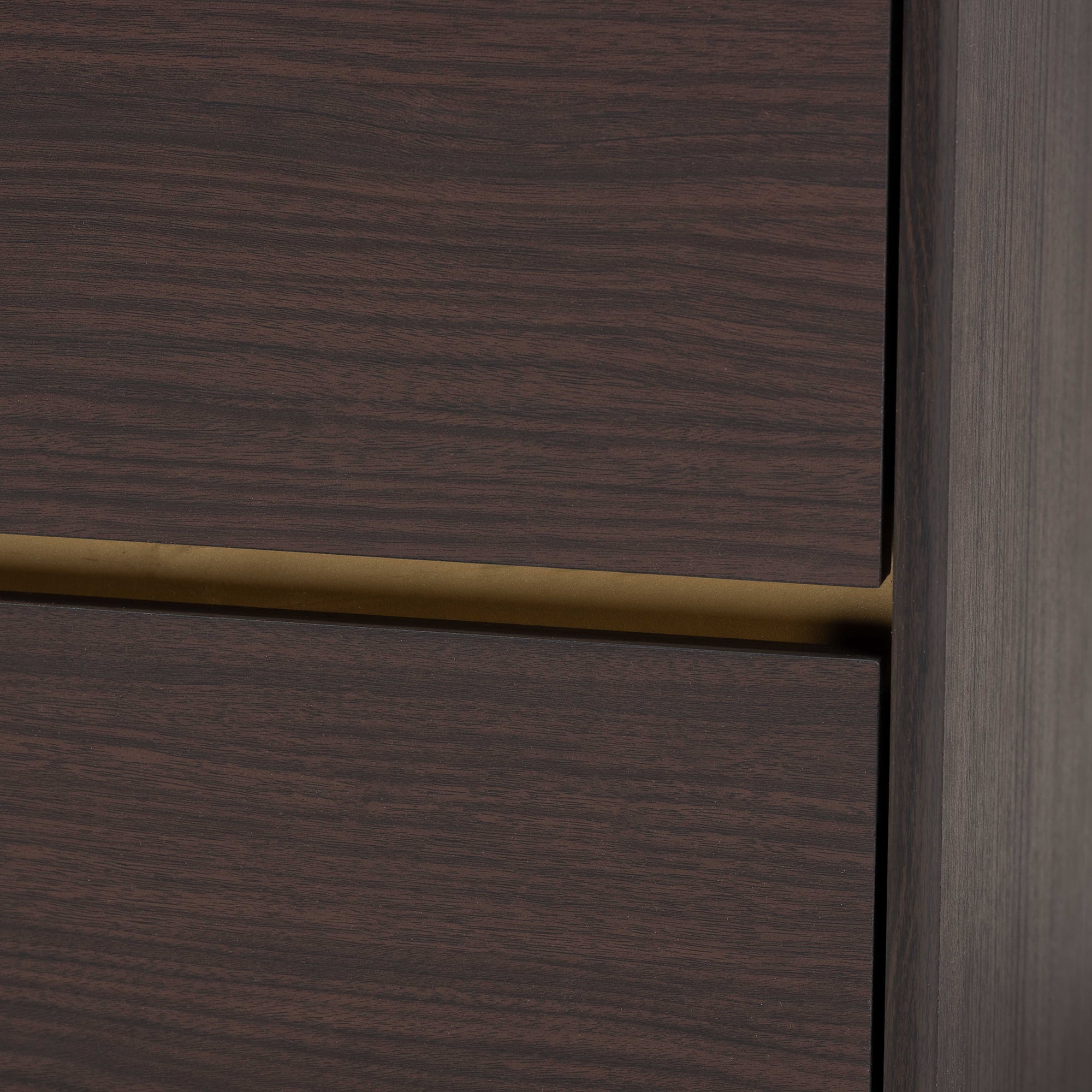 Modern and contemporary nightstand Constructed from engineered wood, faux marble, and polymer Dark brown and gold-tone finish Faux marble top Two (2) drawers Assembly required Product Weight: 33.1 Pound Package Weight: 1 Pound Dimensions: 18.9″ High x 18.9″ Wide x 15.75″ Deep; Drawer Dimensions: 3.6″ High x 15.5″ Wide x 10.4″ Deep Product Color: Dark Brown/Marble/Gold Product Composition: MDF/PU Paper/Plastic