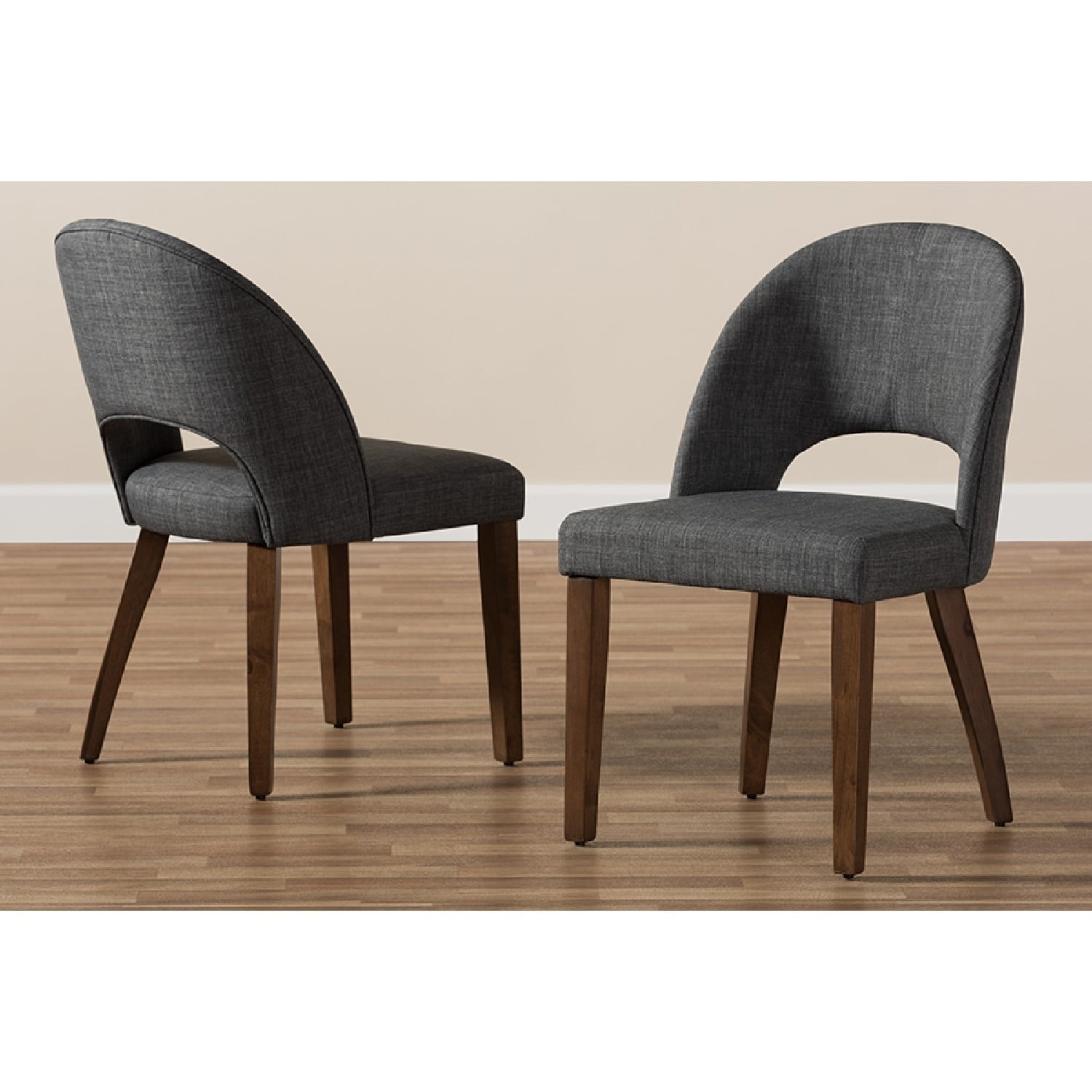 Baxton Studio Wesley Mid-Century Modern Dark Grey Fabric Upholstered Walnut Finished Wood Dining Chair (Set of 2)
