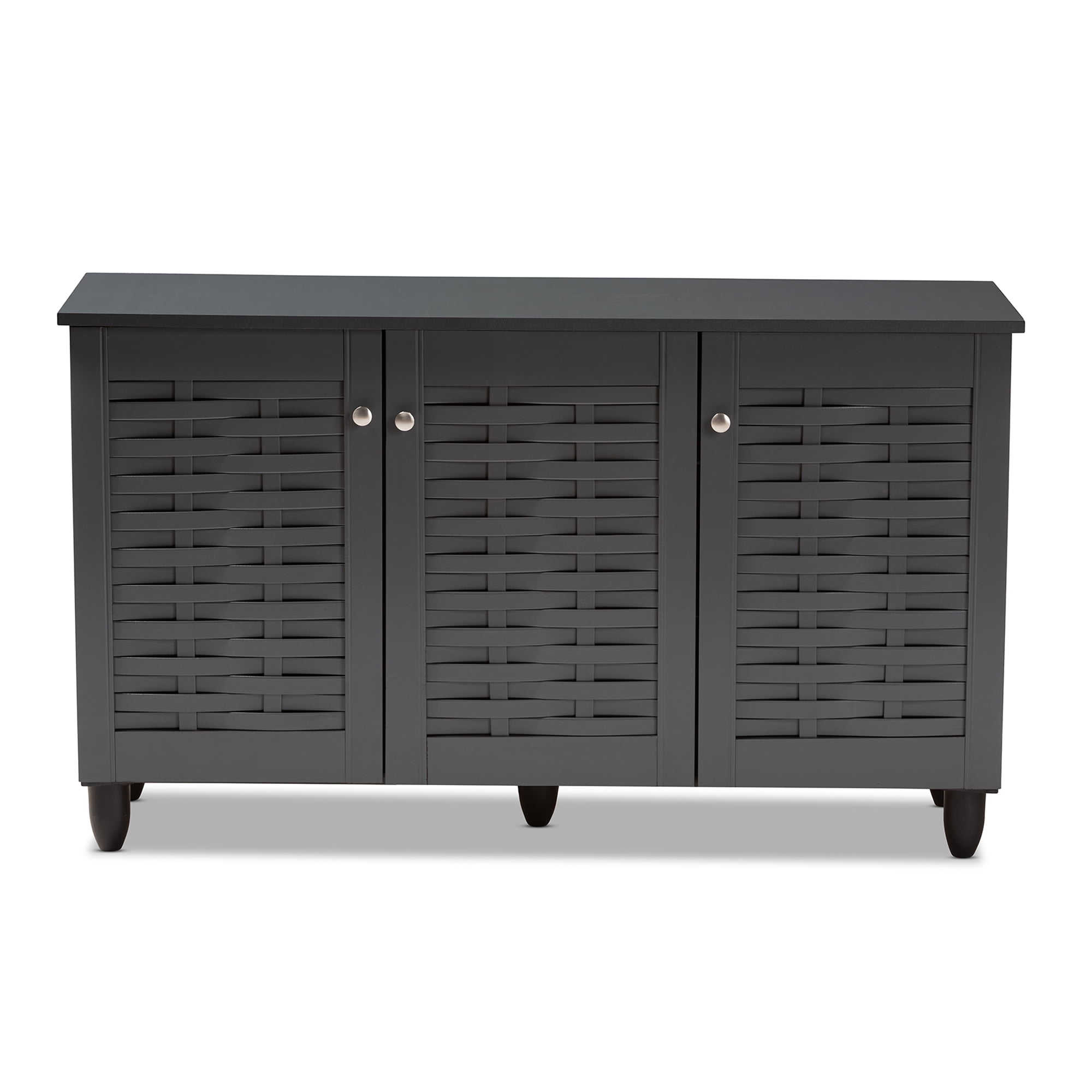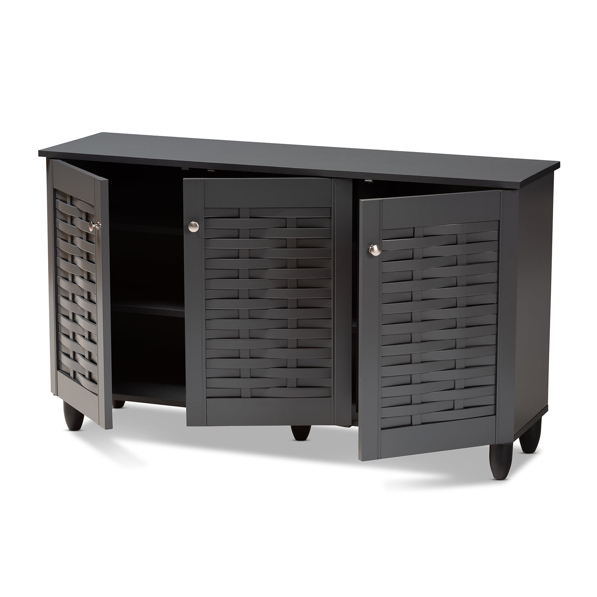 Baxton Studio Winda Modern and Contemporary Dark Gray 3-Door Wooden Entryway Shoe Storage Cabinet