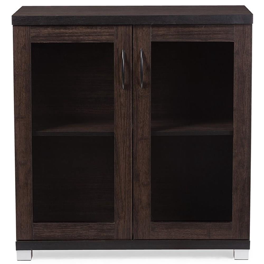 Baxton Studio Zentra Modern and Contemporary Dark Brown Sideboard Storage Cabinet with Glass Doors