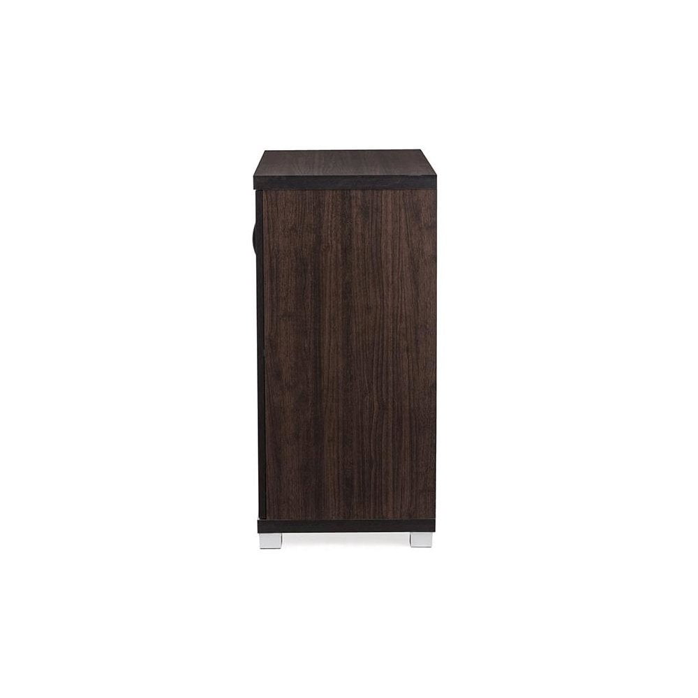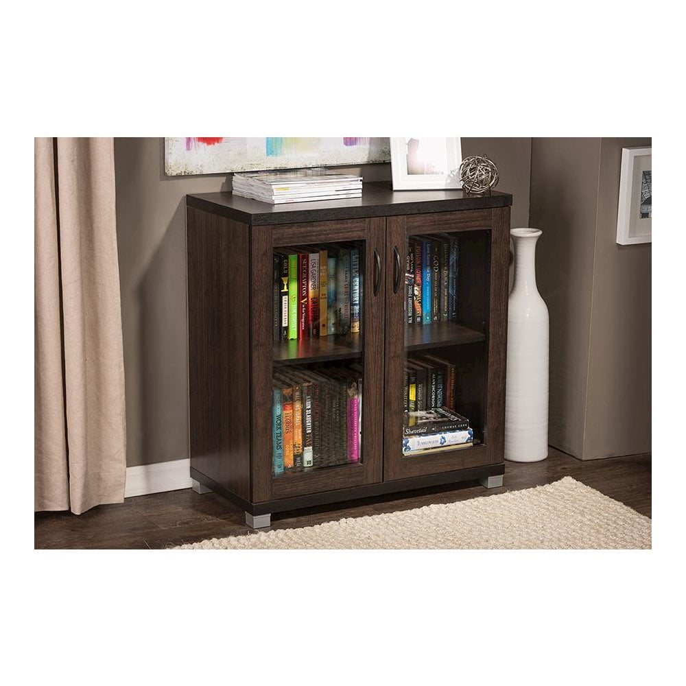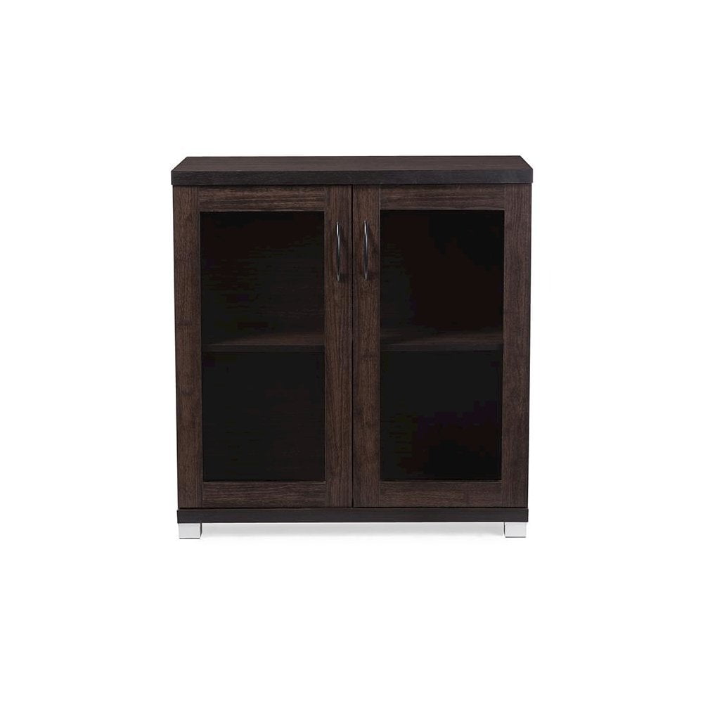 Uncomplicated and practically dark brown, the design of the Zentra Sideboard Storage Cabinet is undoubtedly flawless in the eyes of any homeowner to whom a simplistic aesthetic is equivalent to perfection. The Zentra Sideboard Storage Cabinet features two glass doors with two convenient see through shelving areas, providing a perfect spot for your latest decorative acquisition or your important documents. For a modern and contemporary look, the cabinet is completed with PVC moon handles and powder coated legs. Made in Malaysia, the sideboard cabinet requires assembly. Features: Modern and contemporary design Sturdy construction incorporates engineered wood and MDF frame Dark brown finishing PVC handles and powder coated legs Specifications: Product Dimensions: 32.76″H x 31.2″W x 15.6″D Product Weight: 55 lbs