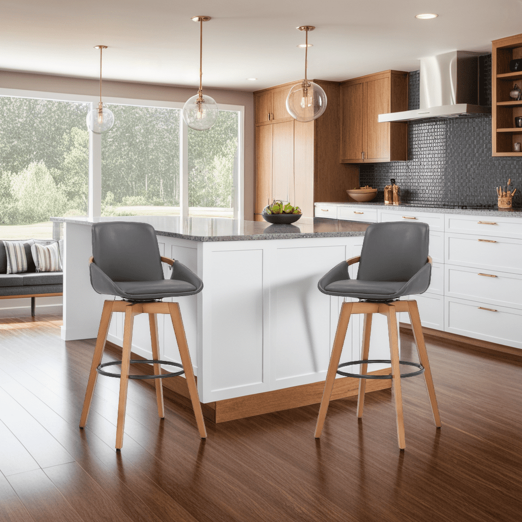 Baylor 26″ Gray Faux Leather and Walnut Wood Swivel Bar Stool