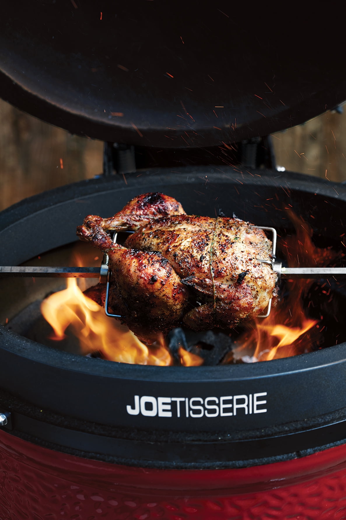 Kamado Joe JoeTisserie Classic Joe Durable 304 stainless spit rod and forks are easy to install Rotation preserves natural juices in meat for even cooking Compatible with Kamado Joe Classic I, II & III