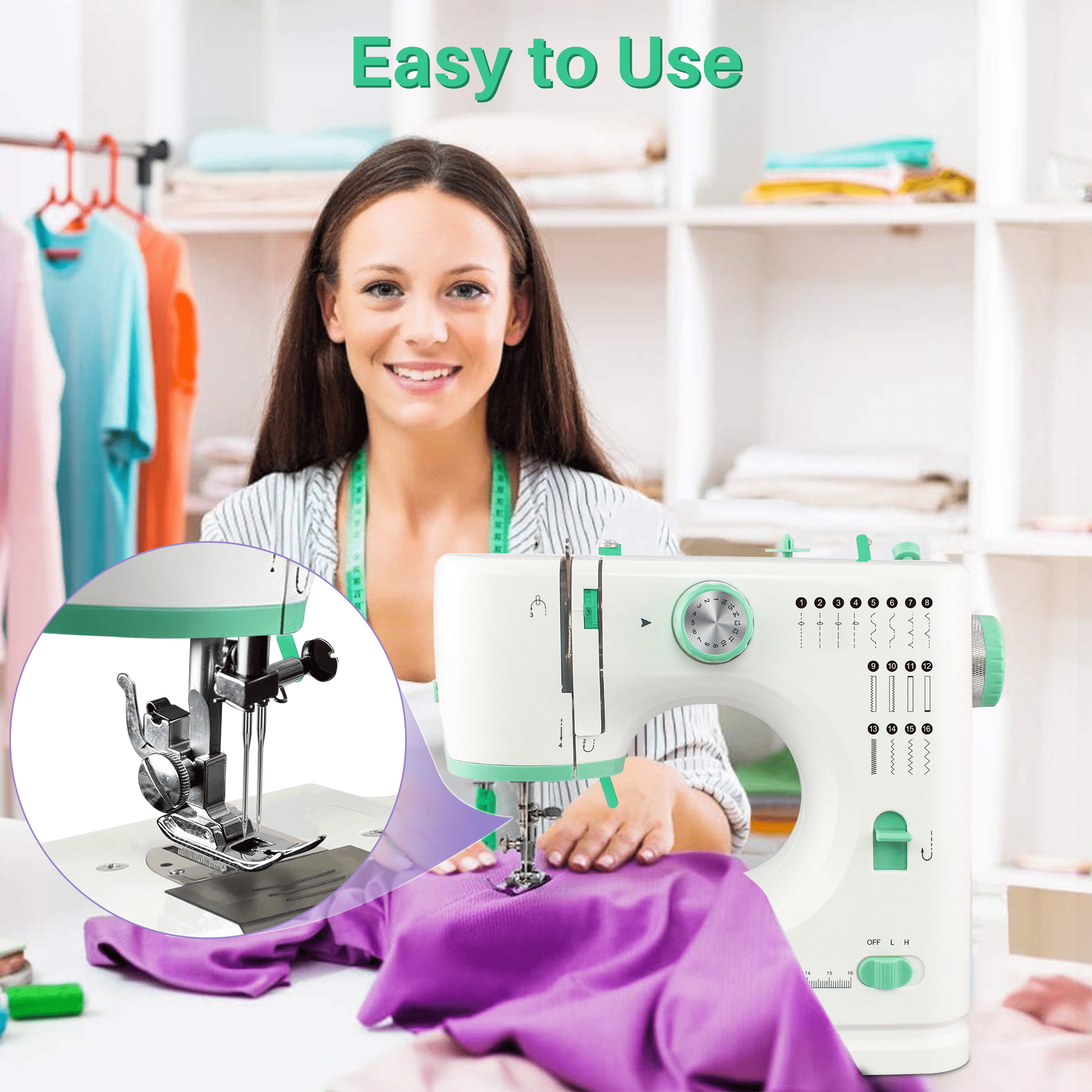 BCOOSS Portable Sewing Machine for Beginners 16 Built-in Stitches with Foot Pedal