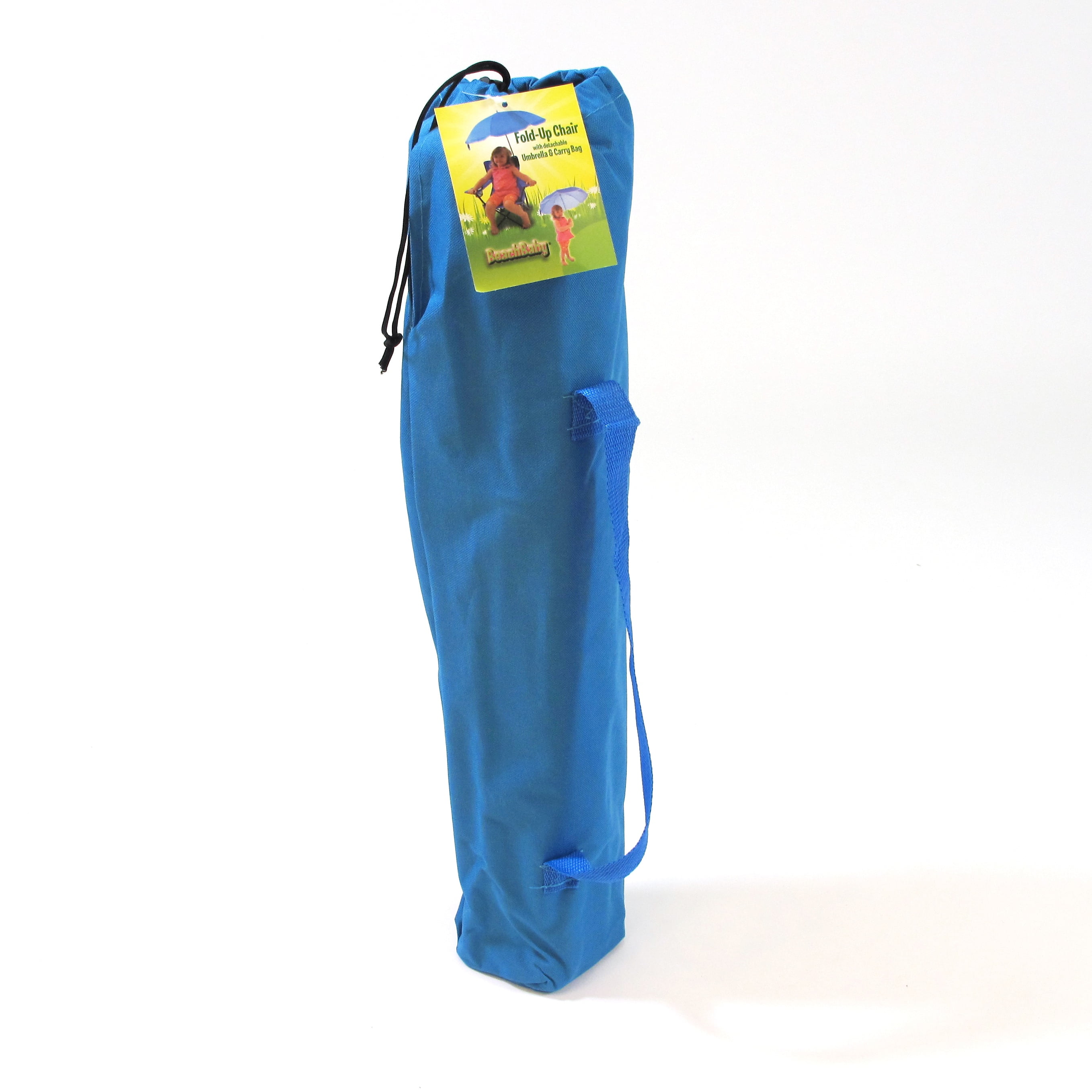 Complete folding camp chair with removable shade umbrella and matching tote bag Matching tote bag with drawstring and shoulder strap Dual safety chair locks to prevent inadvertent closing Provide protective shade for little ones in their own-sized chair Convenient cup holder and armrests Powder-coated steel frame Heavy-duty polyester fabric seat and umbrella Choose from available colors Recommended for ages 2 to 5 or 50# – Meets all US safety requirements Dimensions: 22 W x 21.75 D x 39.5 H in