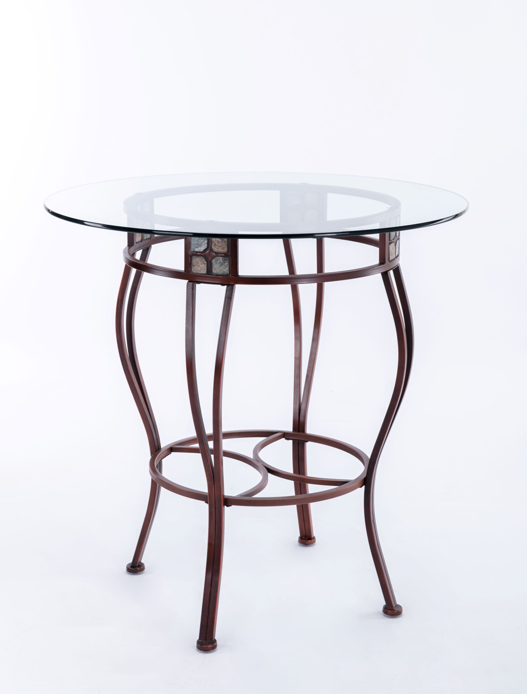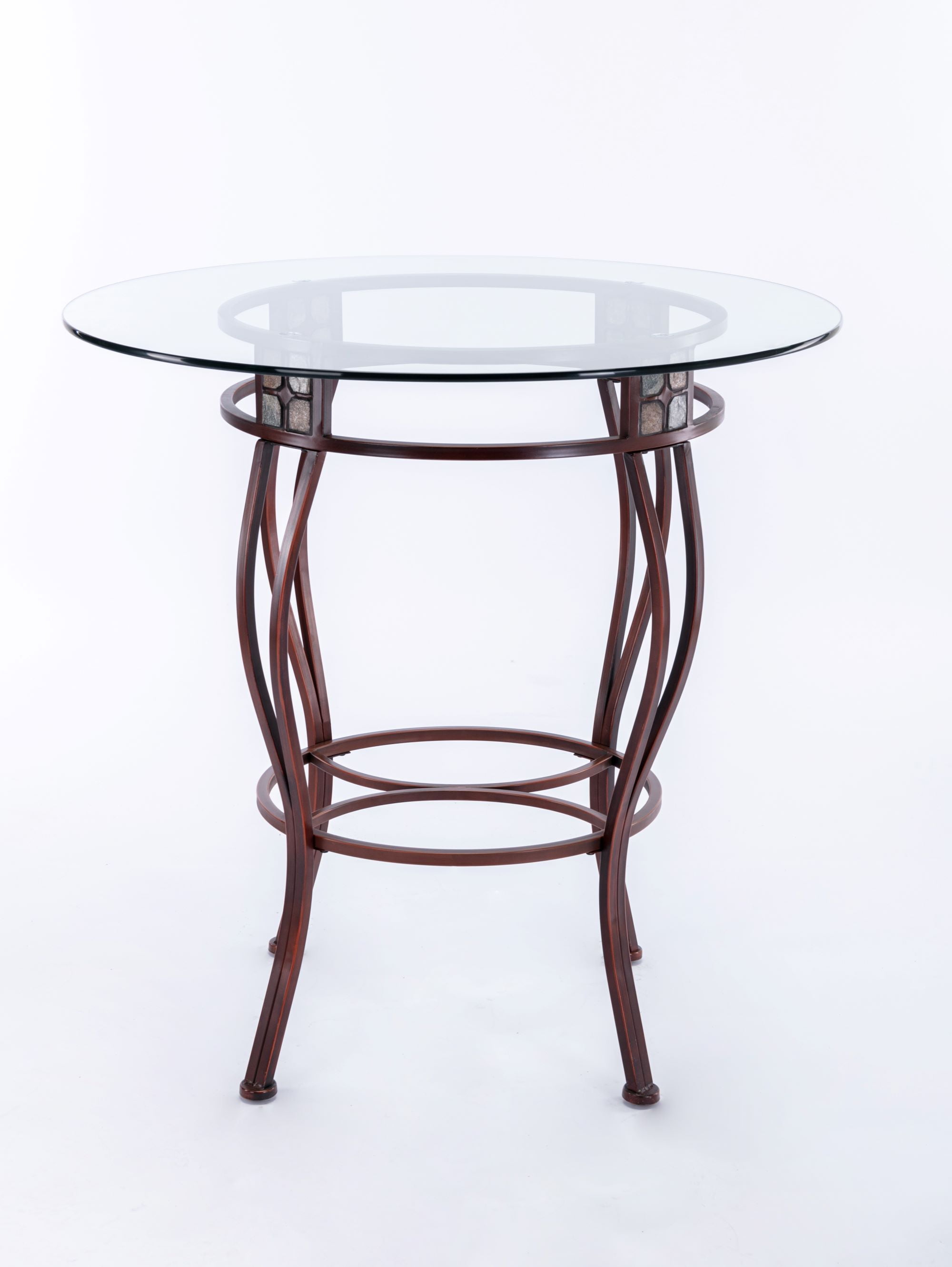 There are so many ways to use the Beau Metal Pub Table that you might want to get two of them. Its versatile design means you can use it anywhere. Place the Beau in a game room and it becomes a pub table. In your breakfast nook, it transforms into a delightful bistro table. Or even place it in the corner of an open-space living area to use as a decorative console table. Be sure to pair this pub table with the matching Beau Swivel Stools from Boraam and create an intimate pub set! The table is available in 36 or 42 inch heights. Features: Constructed with a sturdy metal frame Metallic bronze finish Round beveled glass tabletop Slate mosaic accents Lightly tapering legs Specifications: Assembly Required: Yes Commercial/Residential: Residential use only Product Height: 36″ Product Dimensions: 36″w x 36″h x 36″d Product Weight: 50 lbs.