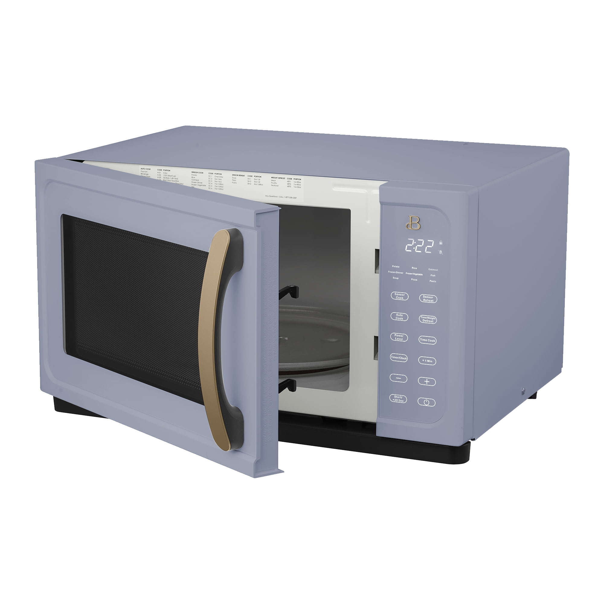 The Beautiful 1.1 Cu ft 1000-Watt Sensor Microwave Oven in Cornflower Blue by Drew Barrymore has an elegant, premium design and is made with durable metal housing with a soft matte premium finish that will complement any kitchen style. Thoughtfully designed with a Touch-Activated display and equipped with 15 convenient pre-set functions will make mealtime easy. The Sensor Cook and Sensor Reheat functions will automatically detect when your food is ready, removing any guesswork and providing the perfect dish. The large 12.4″ glass turntable can accommodate a variety of dishes. The Beautiful 1.1 Cu ft Sensor Microwave Oven combines elegant design with all the convenient, easy-to-use features that will make mealtime easy. Condition: New, Stock Number: BTFCMS811BEST10