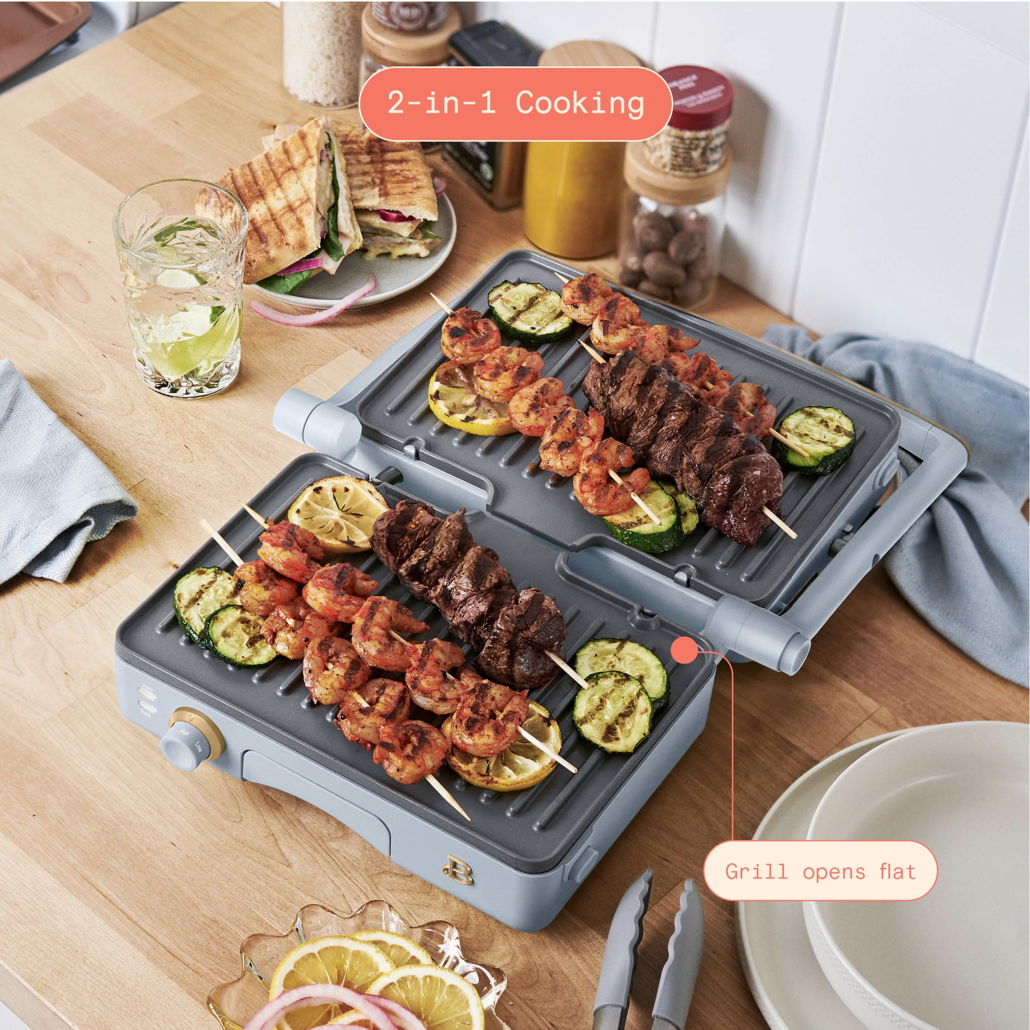 Beautiful 2-in-1 Panini Press & Grill, Cornflower Blue by Drew Barrymore