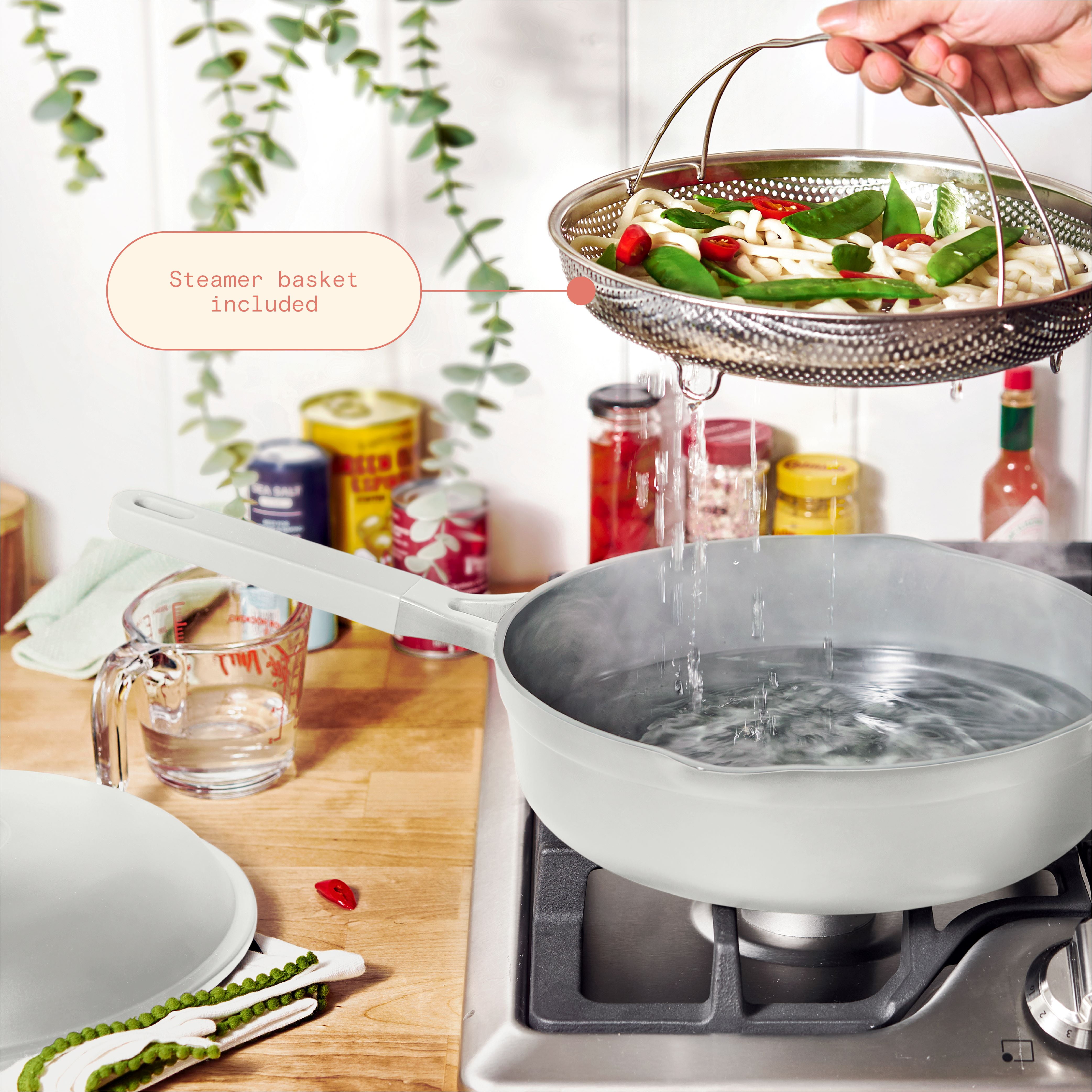 Beautiful All-in-One 4 QT Hero Pan with Steam Insert, 3 Pc Set, White Icing by Drew Barrymore