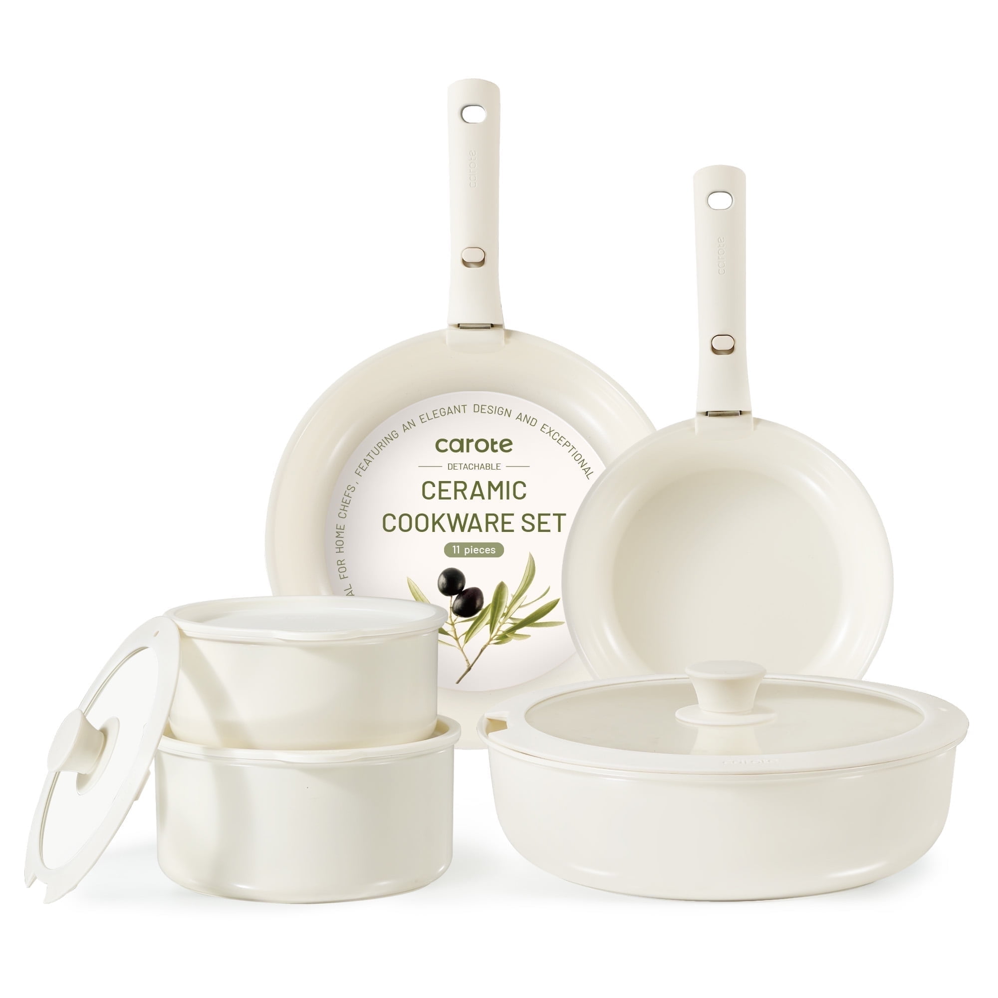 10 Cooking Functions: Boil, Strain, Sauté, Simmer, Pan Fry, Sear, Braise, Steam, Stir Fry, and Serve Free from forever chemicals Durable cast aluminum construction 3 piece set, stainless steel steamer basket included Large 4qt capacity Two convenient pour spouts Compatible with all stovetops including induction Stainless lid knob with gold finish Stay cool comfort grip long handle Dishwasher safe, handwash recommended