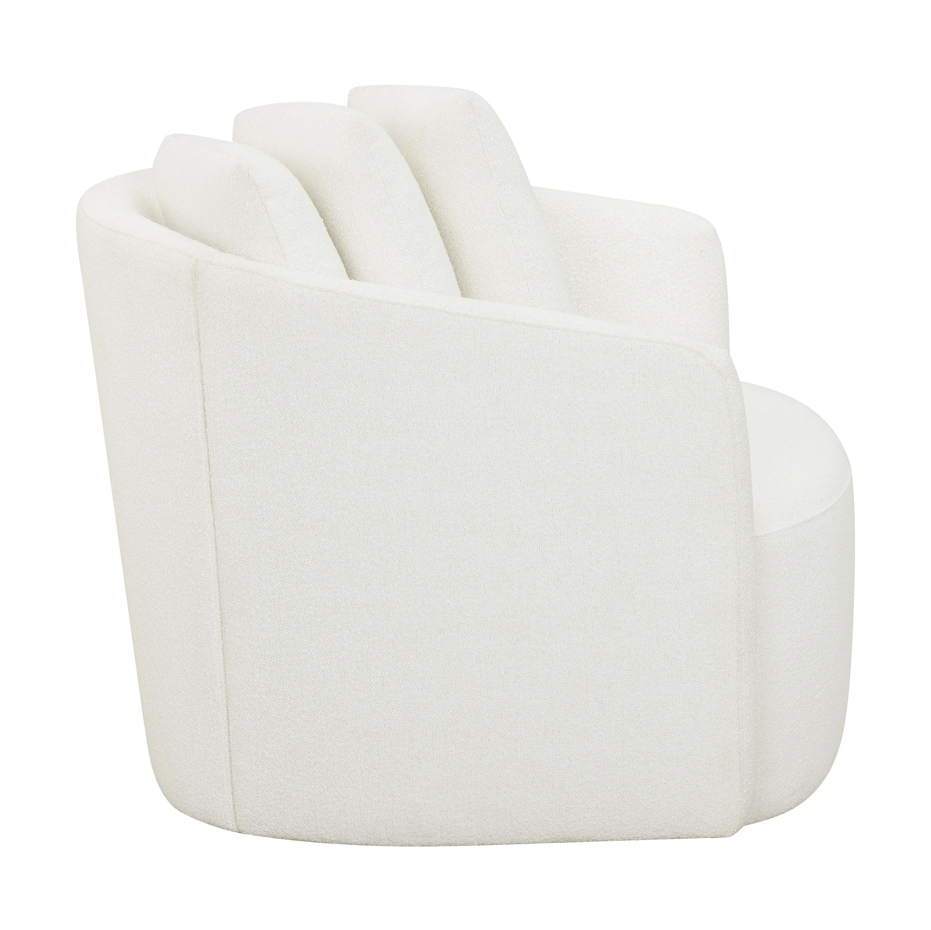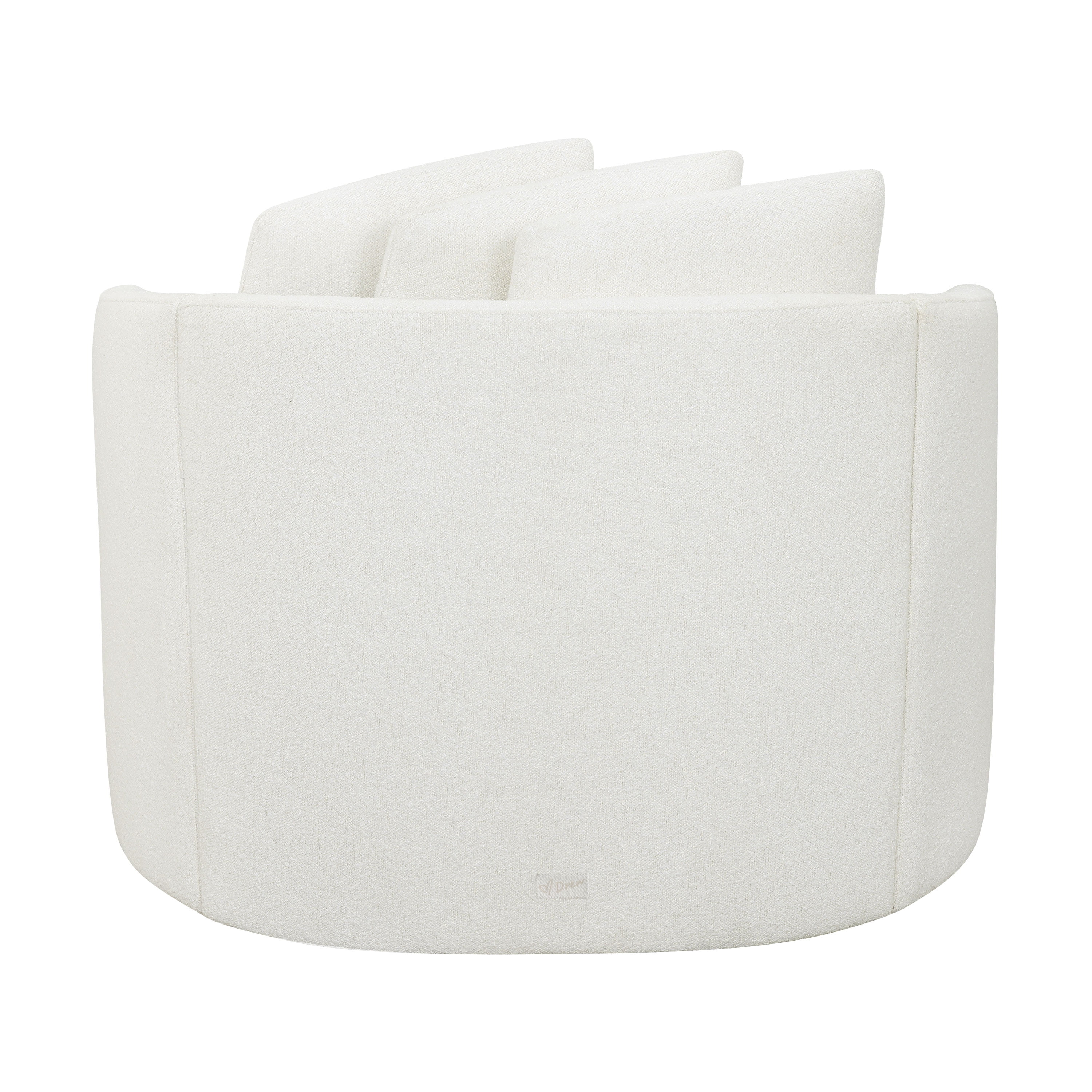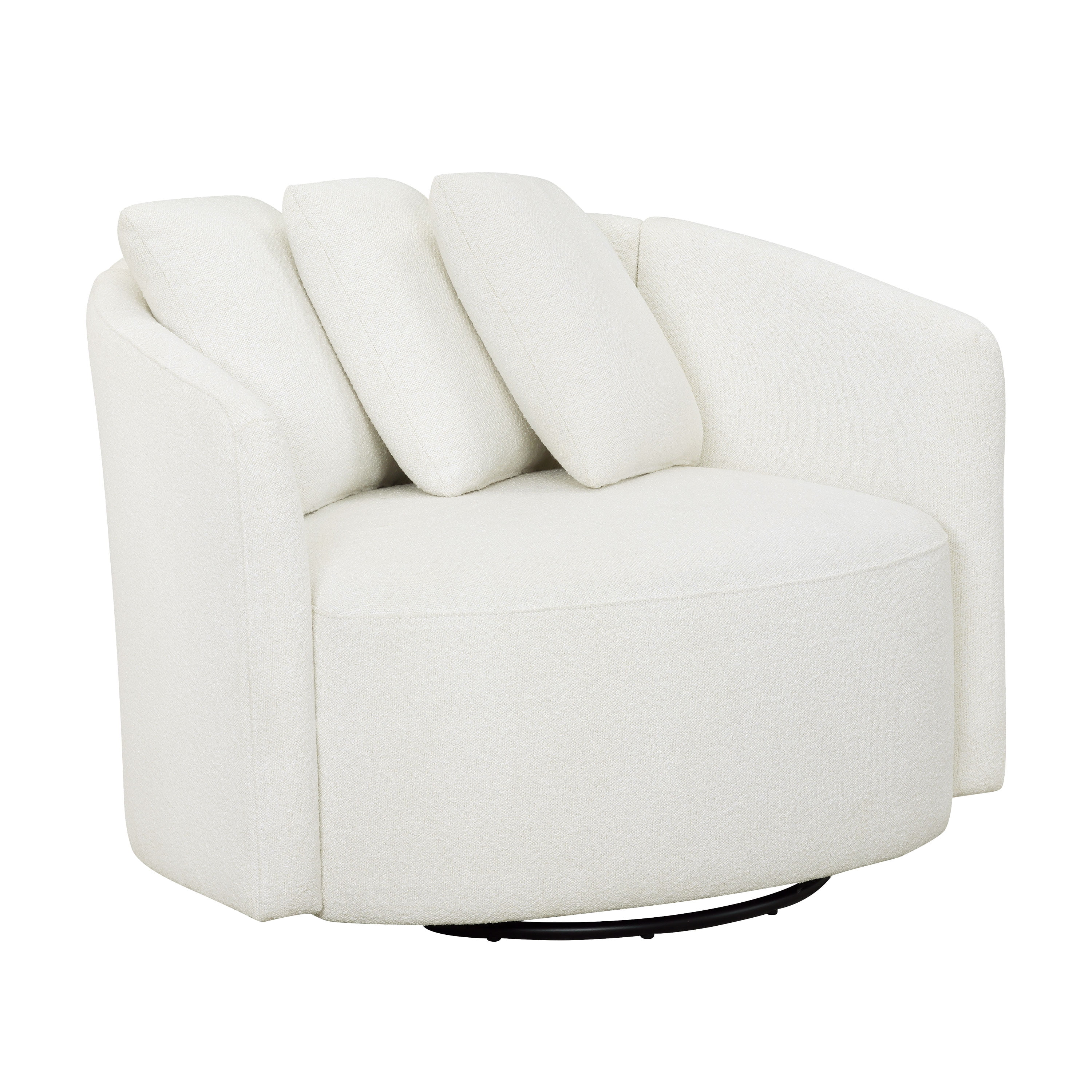 We love the Drew Chair by Beautiful for its wonderful blend of style and comfort. The streamlined design of this oversized boucle swivel accent chair is highlighted by soft, fabric upholstery with natural fibers for an elegant touch and soothing cream tones that compliment a variety of home decor styles and color palettes. The 3 plush accent pillows add customizable comfort. The metal swivel base spins 360 degrees so you can easily direct your attention anywhere in the room. Relax and talk with friends or curl up with a good book, the Drew Chair by Beautiful will be the perfect addition to your living room, reading nook or favorite space.