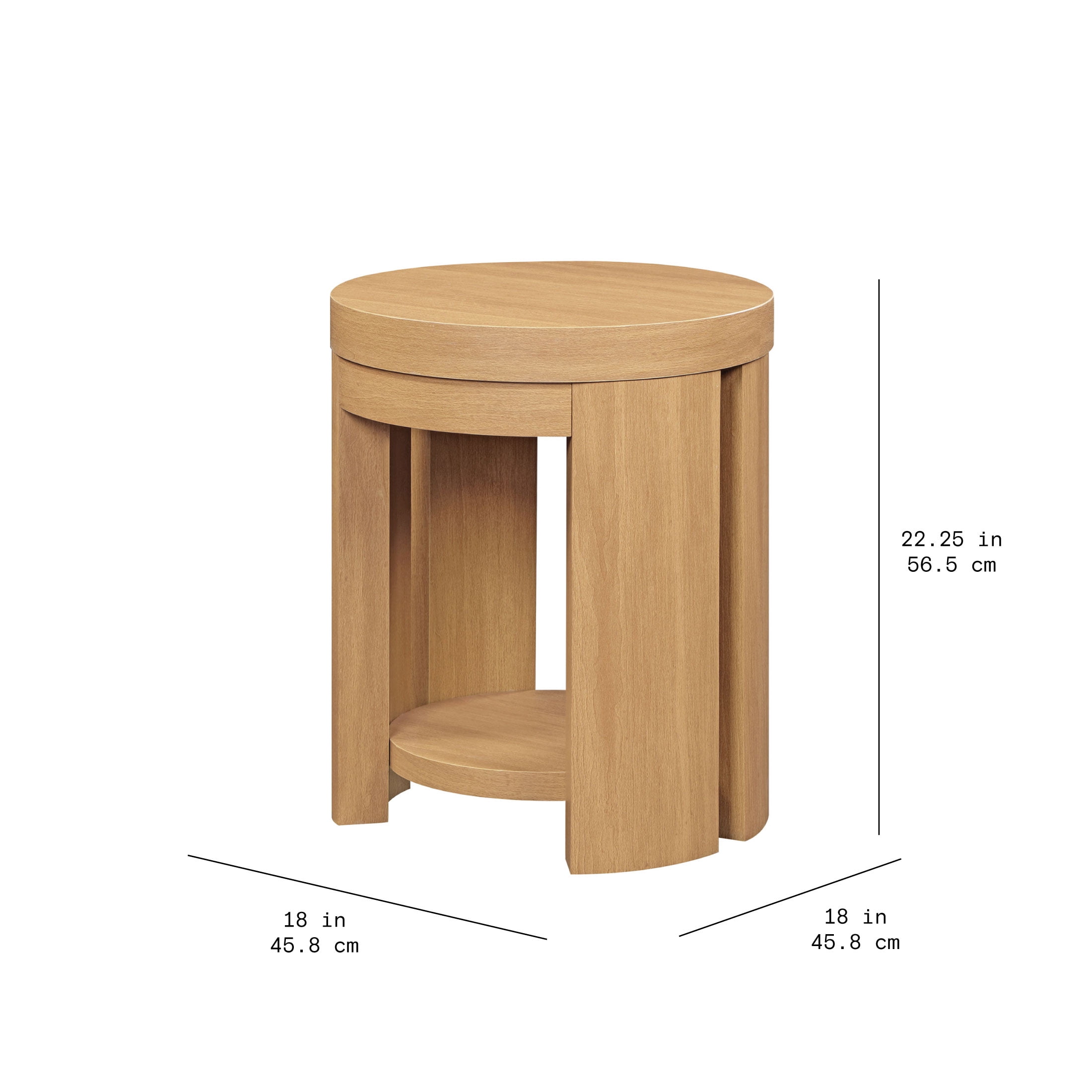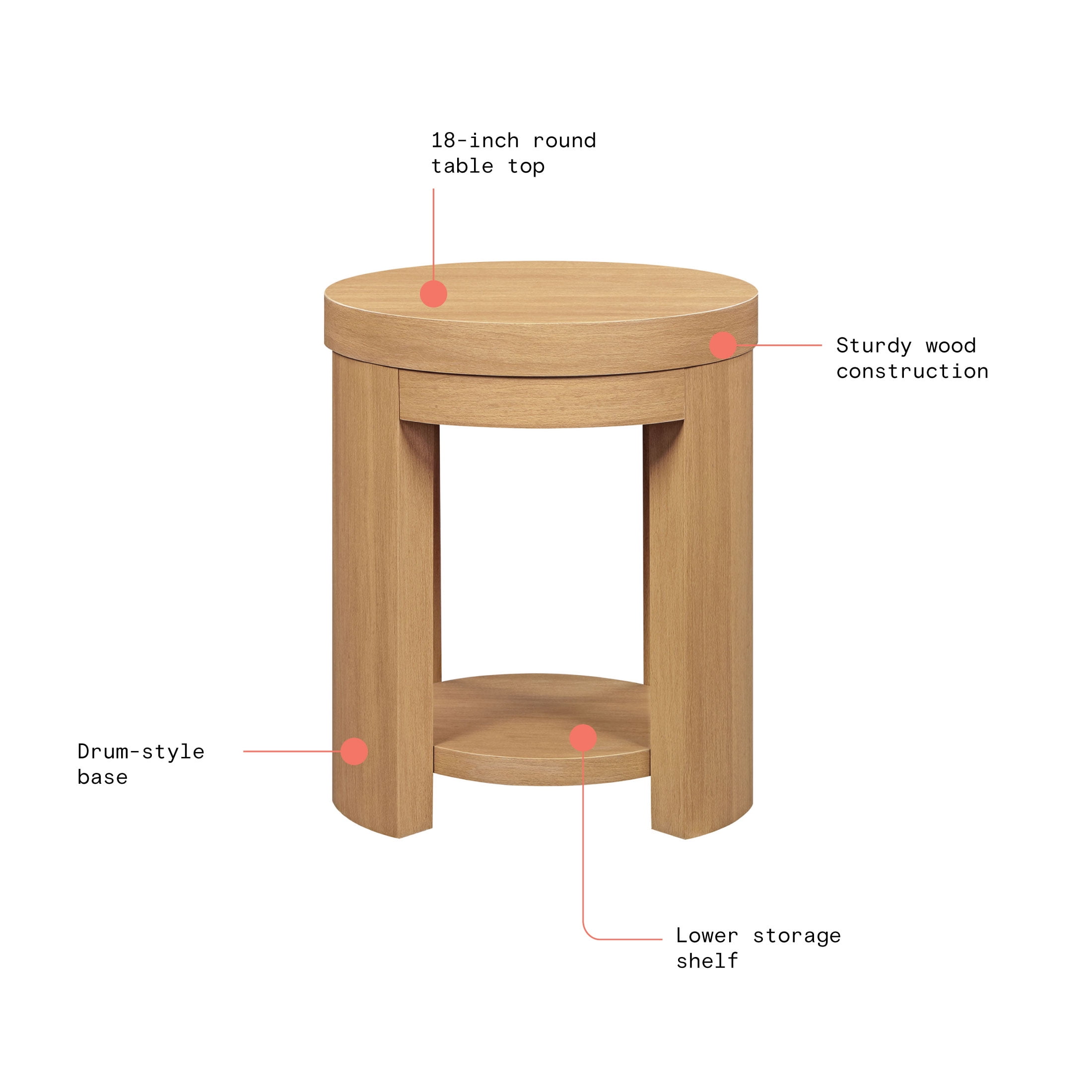 18-inch round table top for a compact, functional surface Mid-century modern design adds a stylish touch to living room Lower storage shelf for added convenience and organization Available in Rich Black or Warm Honey finishes Sturdy wood construction for long-lasting durability Adjustable floor levelers for stability on any surface Product Dimensions: 18 in W x 18 in D x 22.25 in H (45.8 cm x 45.8 cm x 56.5 cm) Product Weight: 55.1 lb Packaging Dimensions: 24 in x 22 in x 12.25 in Packaging Weight: 40.3 lb (18.2 kg) Model# BE5525004710001, BE5525004710002