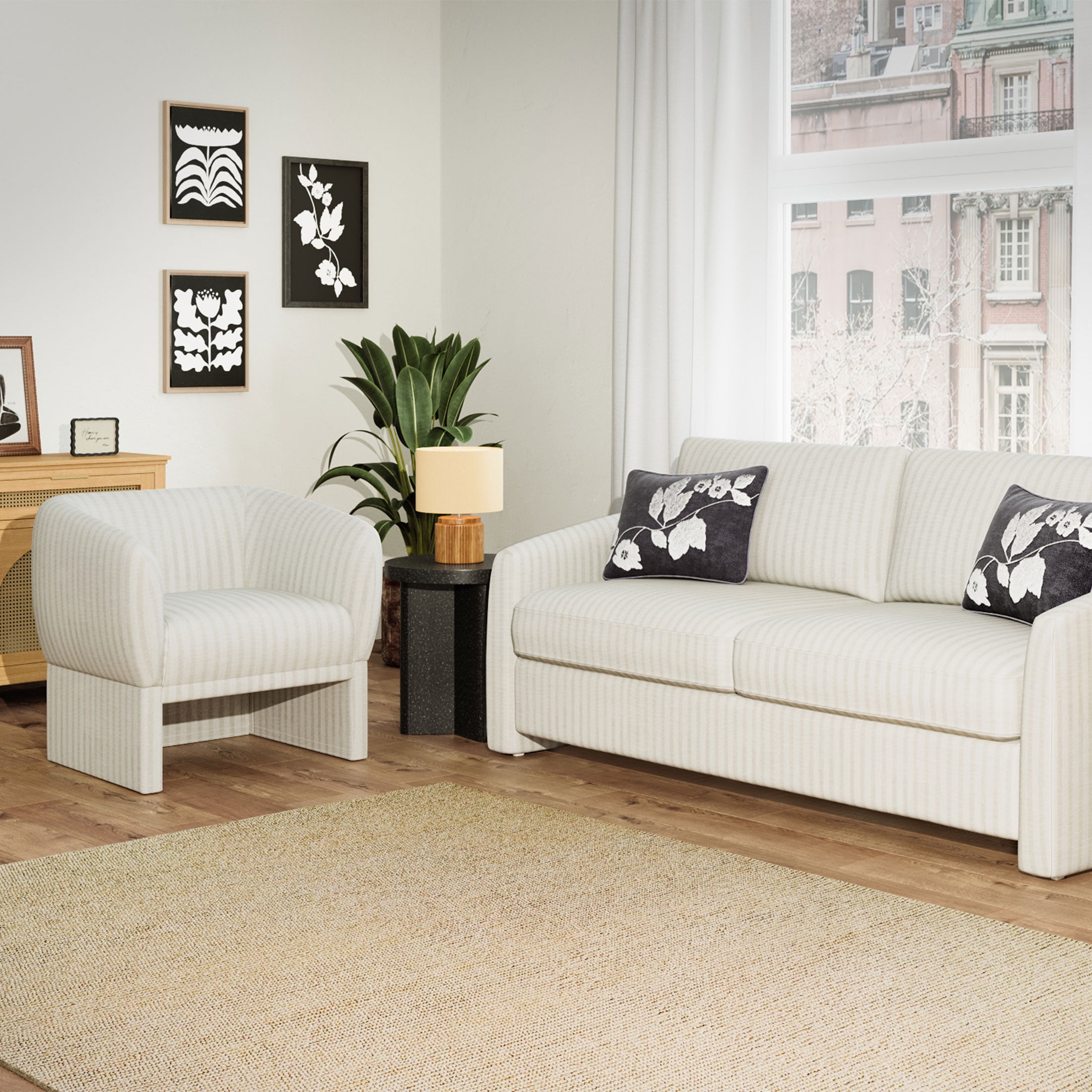 Beautiful Small Space Accent Chair by Drew Barrymore, Beige and White Linen
