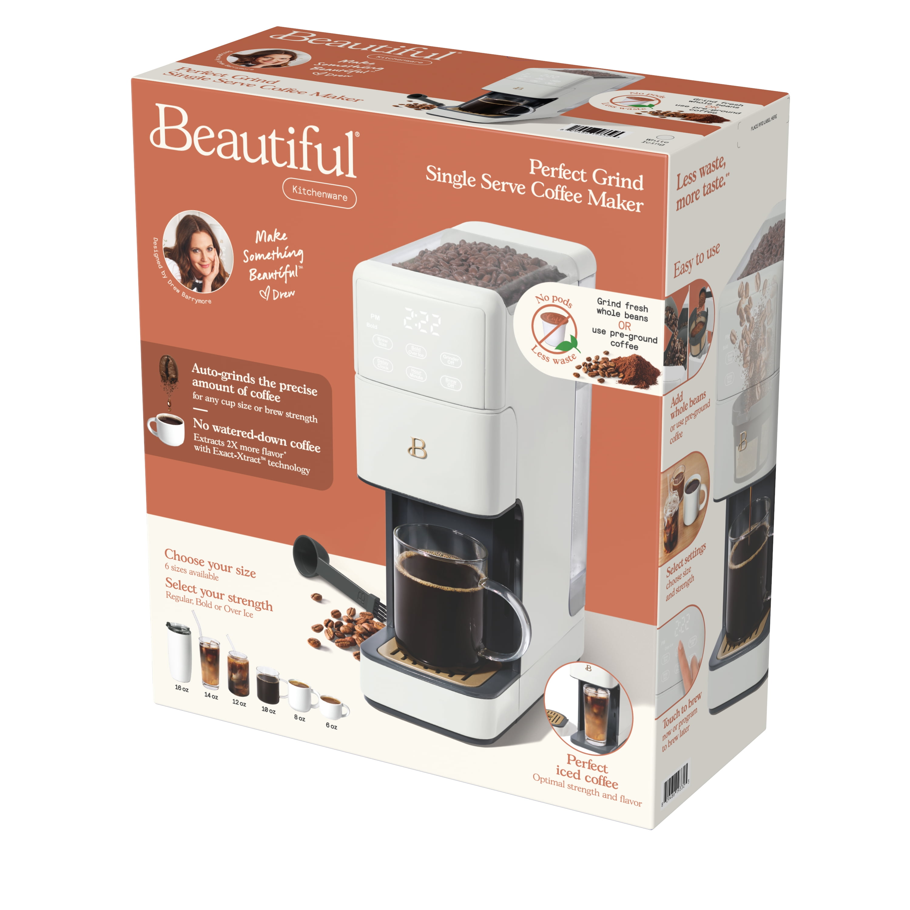 Beautiful Perfect Grind™ Programmable Single Serve Coffee Maker, White Icing by Drew Barrymore