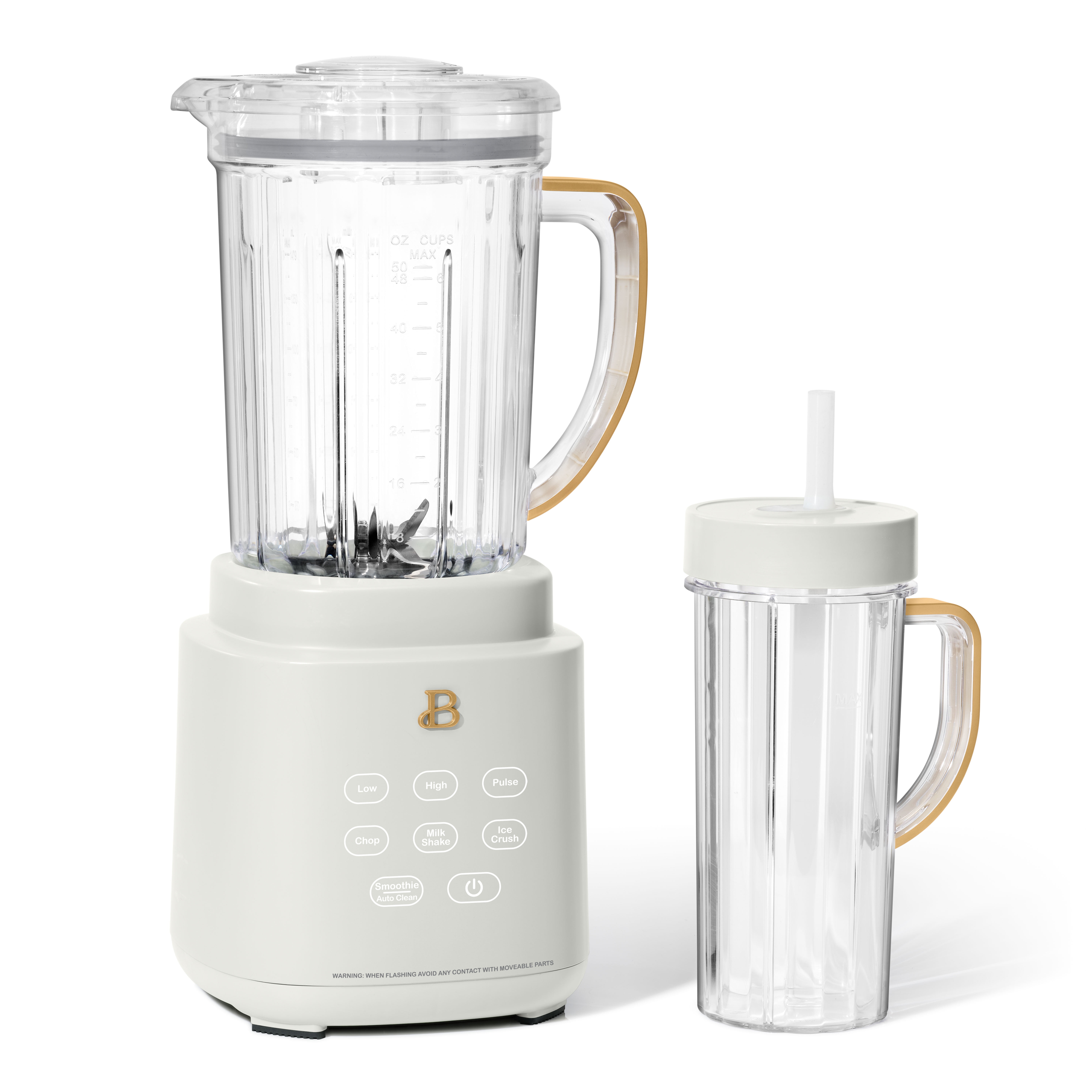 PrecisionSense™ Technology auto-detects ingredients to control speed and power for consistent results Powerful 700-watt motor effortlessly crushes ice and fresh or frozen fruits and vegetables Includes 3 speeds & 4 pre-sets: Low, High, Pulse & Ice Crush, Chop, Milkshake and Smoothie/Clean 50oz BPA-free, scratch-resistant Tritan™ jar with pour spout and 2oz measuring cap 20oz BPA-free single-serve cup with No Drippy Sippy™ lid Our signature touch-activated display illuminates only when you need it Durable metal-to-metal drive and 4-tip stainless steel blade tackles tough-to-blend ingredients like kale and carrots Removable blade, pitcher and single-serve cup are dishwasher safe Beautiful by Drew Barrymore available exclusively at Condition: new