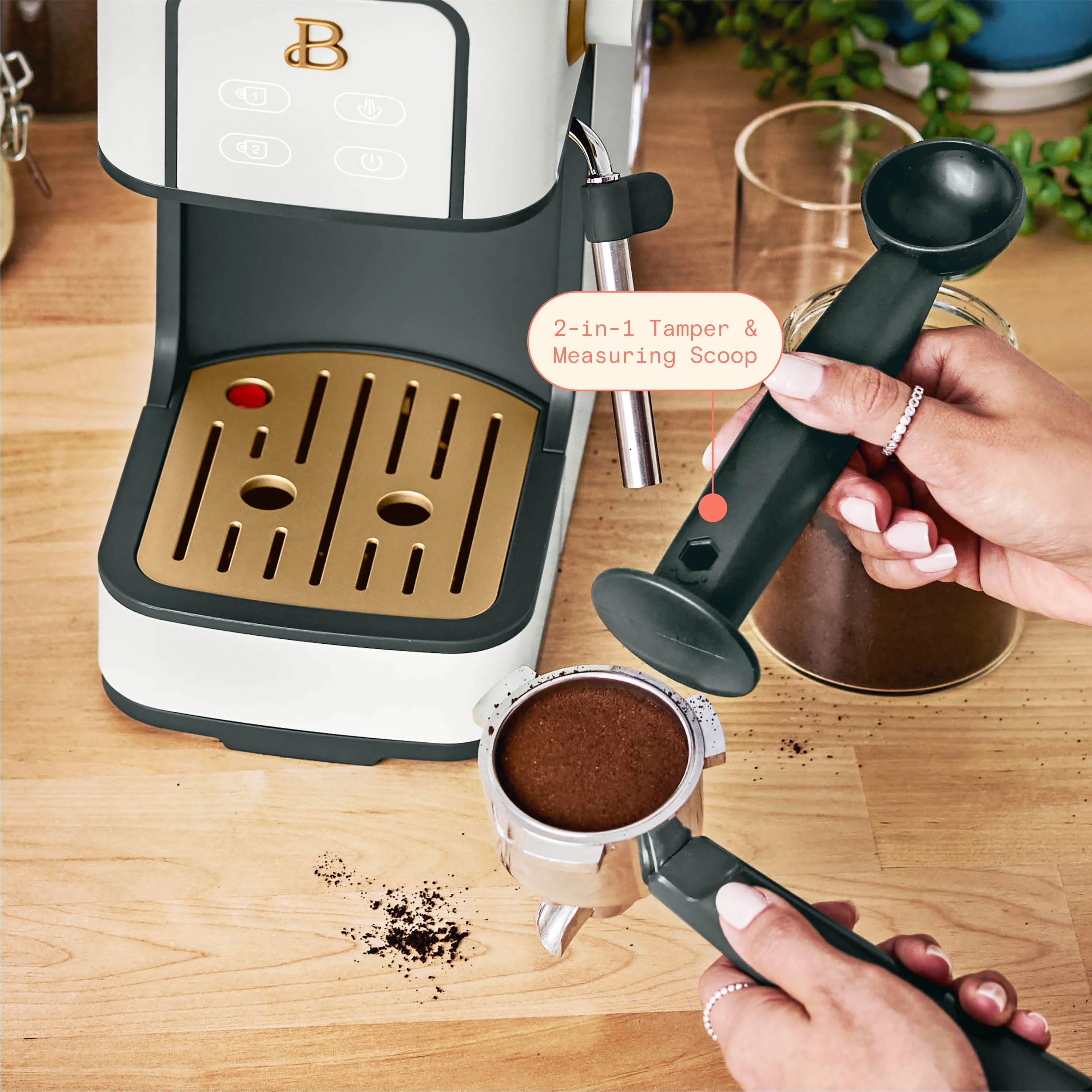 Beautiful 19390 Slim Espresso Maker with 20-Bar Pressure, White Icing
