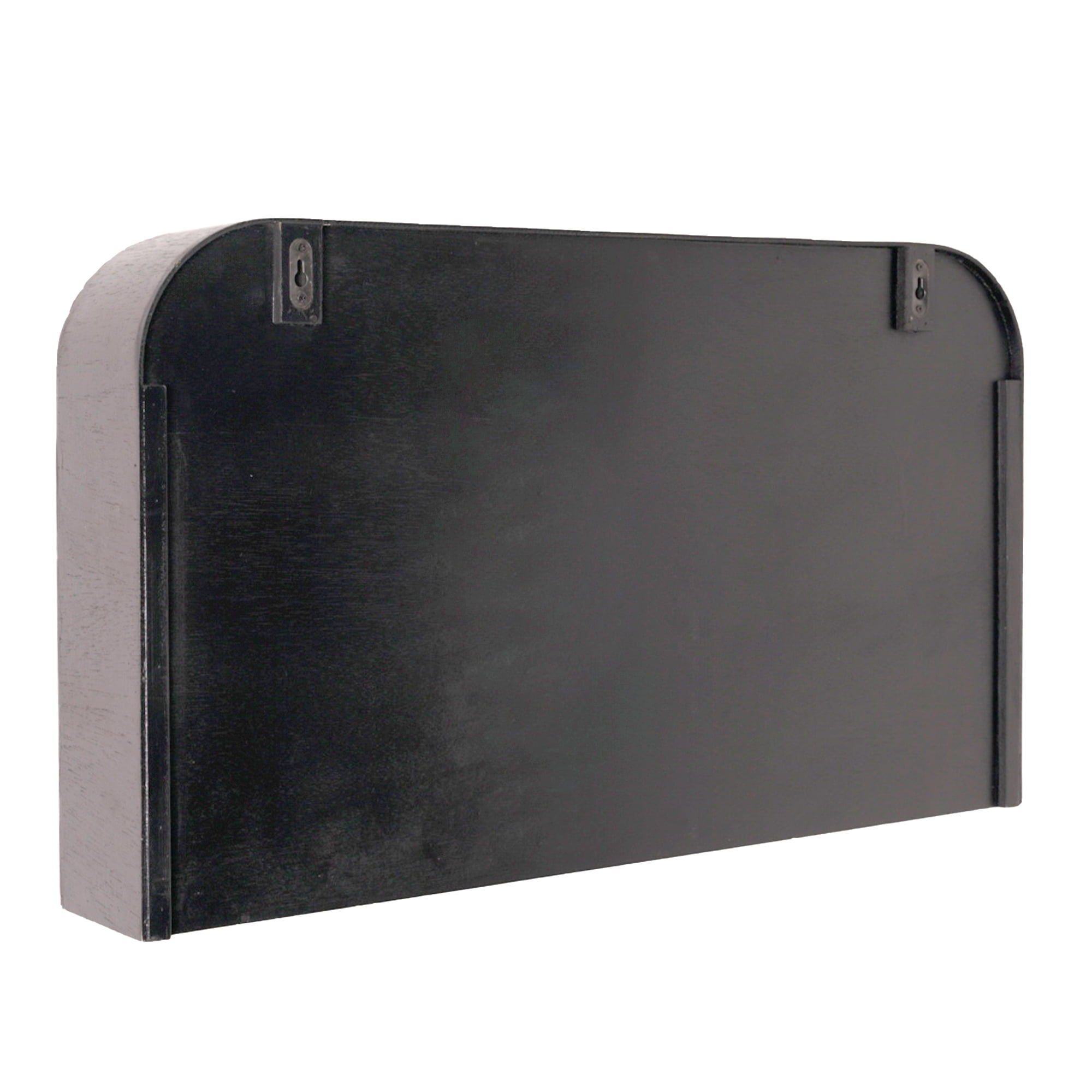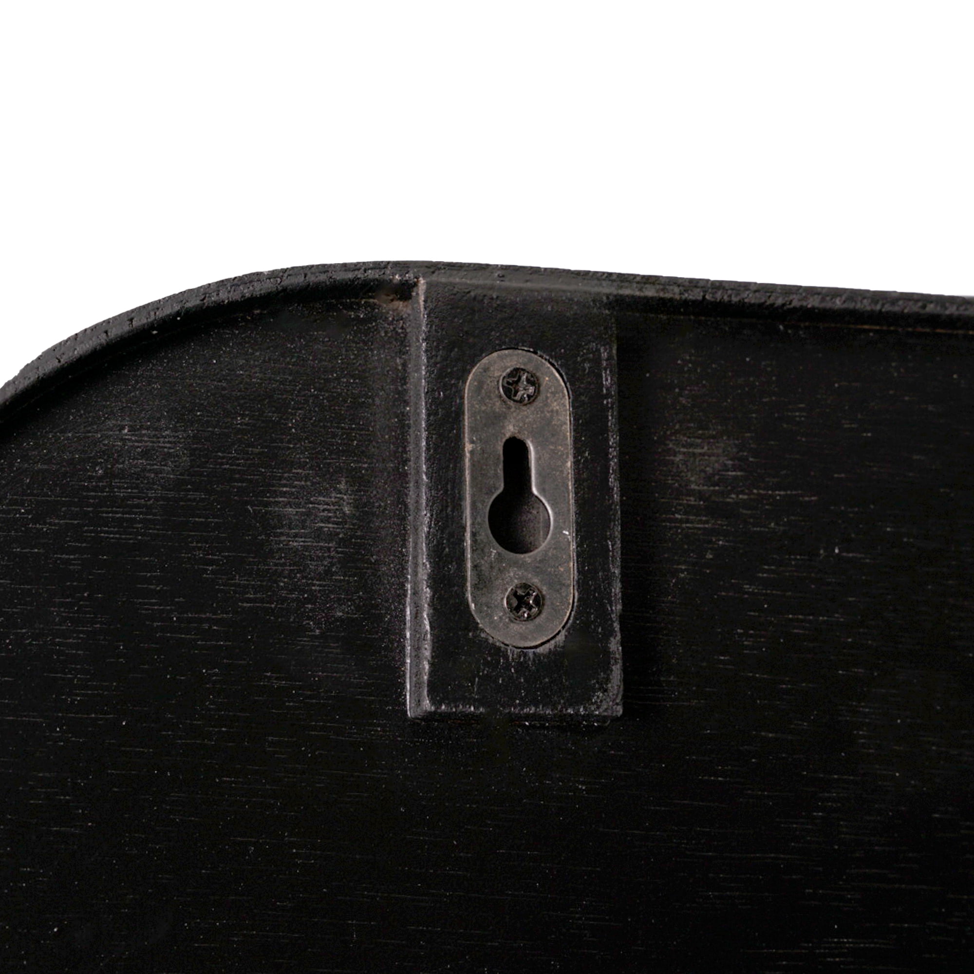 Transport yourself back in time with our wall shelf, featuring a sleek and stylish 80’s silhouette design. Embrace modern minimalism with our wall shelf’s sleek black color, adding a chic and sophisticated touch to your decor. Designed for maximum functionality, our wall shelf boasts a spacious rectangular shape that provides ample storage. The sturdy construction allows for secure mounting and reliable support, making it a practical addition to any room. Perfect for storing smaller items or showcasing decorative accents with its keyhole hanging style Care Instructions : Wipe with a soft cloth. Hardware Included