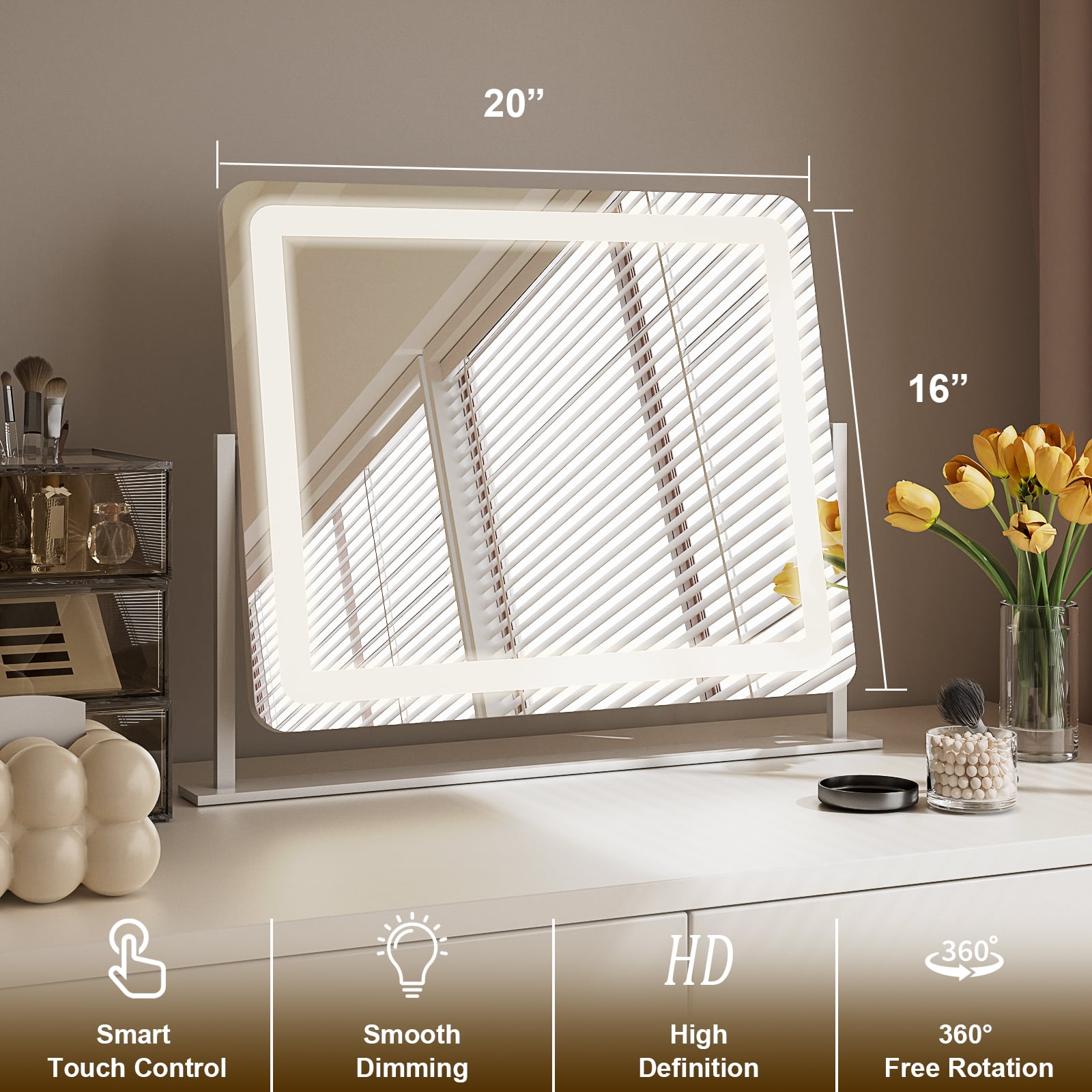 BEAUTYPEAK 20″x16″ Hollywood Vanity Mirror Rectangular Mirror with LED, White