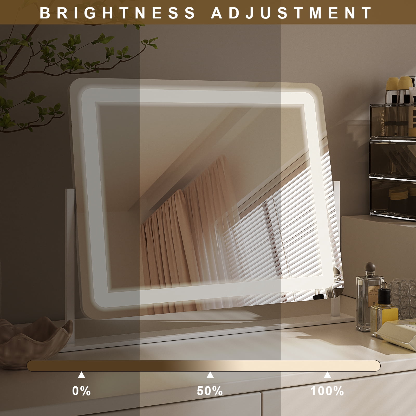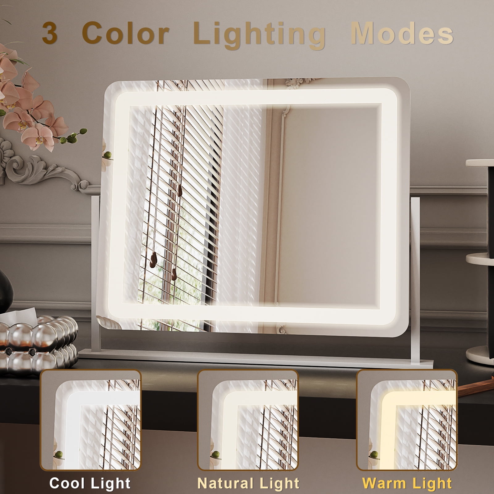 Features: Hidden Bulbs: The bulbs are embedded inside the mirror, creating a simple and beautiful design that saves space and improves the overall experience. Sensor Switch: The switch on the screen makes it easy to turn the light on and off and adjust the brightness of the bulbs. Three Color Modes: Cold/Natural/Warm Light. The brightness can be easily adjusted by touching the mirror, providing you with the ability to personalize the lighting to your preferences. High Definition: Clearer, more realistic images allow users to more accurately see the condition of their skin for finer makeup. Free Rotation: Users can all easily adjust the angle of the mirror to get the most comfortable viewing angle. Specification: Brand: BEAUTYPEAK Color select: White Size: 22″W x 18″H / 20″W x 16″H Shape: Rectangular Material: Shatter-proof Glass & LED Lights Style: Classic Mounting Type: Wall Mounted Room Type: Bedroom & Living Room Assembly Required: No Department: Unisex-Adult Light Information: Feature: Waterproof and durable Color: Dual-color lighting design provides three different color temperatures. Composition: Built-in 120 LED beads.60 LED beads with a color temperature of 3200K.60 LED beads with a color temperature of 6000K. Illumination: Adjustable 20-26 lumens per bead