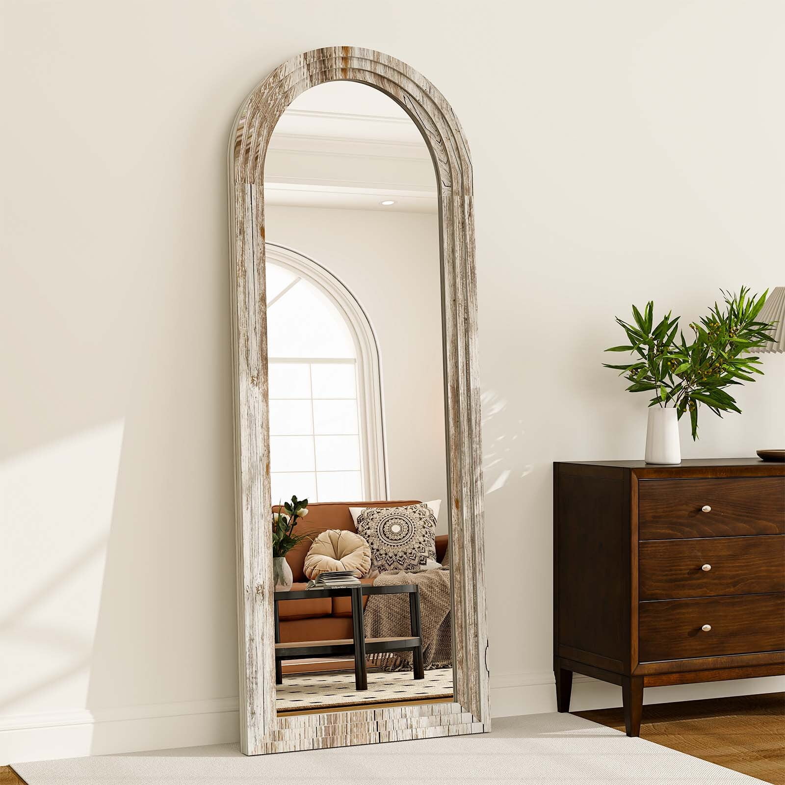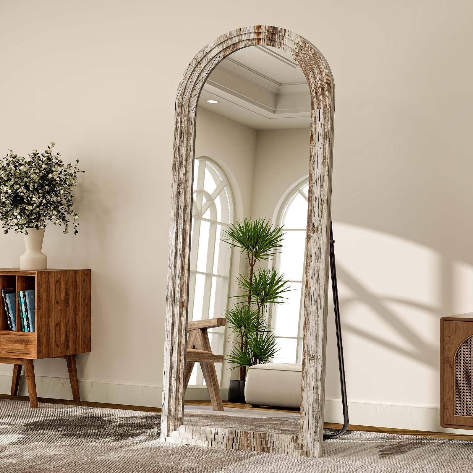 BEAUTYPEAK 21″x 64″ Classic Paulownia Wood Framed Arched Full Length Mirror, White