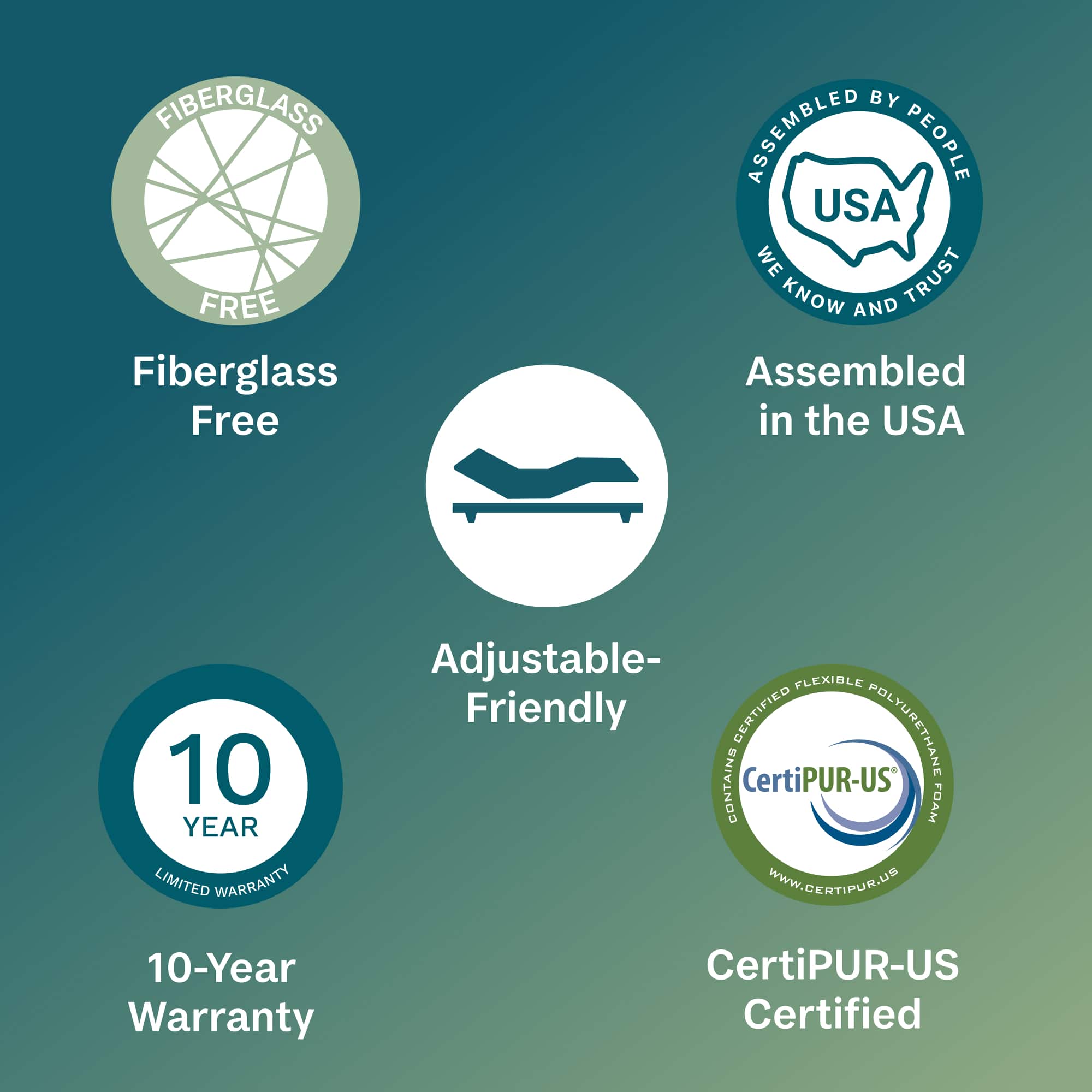 The Beauty Sleep 10” Medium-Firm Hybrid Mattress In A Box features a quilted mattress surface, supportive coils, and quality foams for consistent, comfortable sleep. Each mattress offers Original Beautyrest Pocketed Coil Technology for lasting support, contouring AllCool Gel Memory Foam for pressure relief, and High-Density AirCool Foam for airflow. Our quality materials ensure each mattress is up to 25% more breathable*, helping you sleep comfortably each night. Durably assembled in the USA within trusted facilities, the Beauty Sleep 10” Medium-Firm Hybrid Mattress In A Box is offered at a value, and conveniently delivered to your door, so you can sleep well, consistently. *Compared to the same build with a zipper cover in the place of the quilt package.
