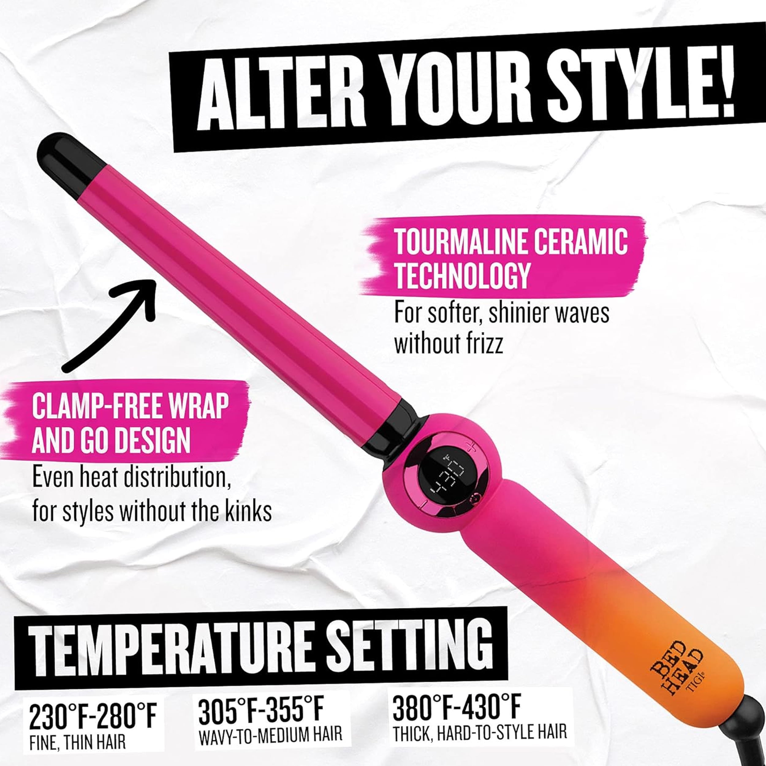 Looking to ride a different kind of wave? Get to know the Bed Head rock ‘n waver tapered styling wand. It’s not your average curling wand, the tapered barrel shape creates different size curls all in one go for a whole lot of texture. We’re talking perfectly undone, natural-looking, tousled waves that last. Just the kind of messy vibe we can get behind! This wand means business With a quick 30-snd heat-up so you can get right to styling. All hair types are invited to the party when the temperature reaches all the way up to 430 degrees Fahrenheit. You’ve got full control and 10 different heat settings so you can get your style exactly how you want it. Built-in Tourmaline ceramic is your protector from heat damage, with a soft side that likes to give your styles All the smoothness Shine. Complete with the features any on-the-go person could want. Bring the waves with you wherever you go and let your creativity rule.