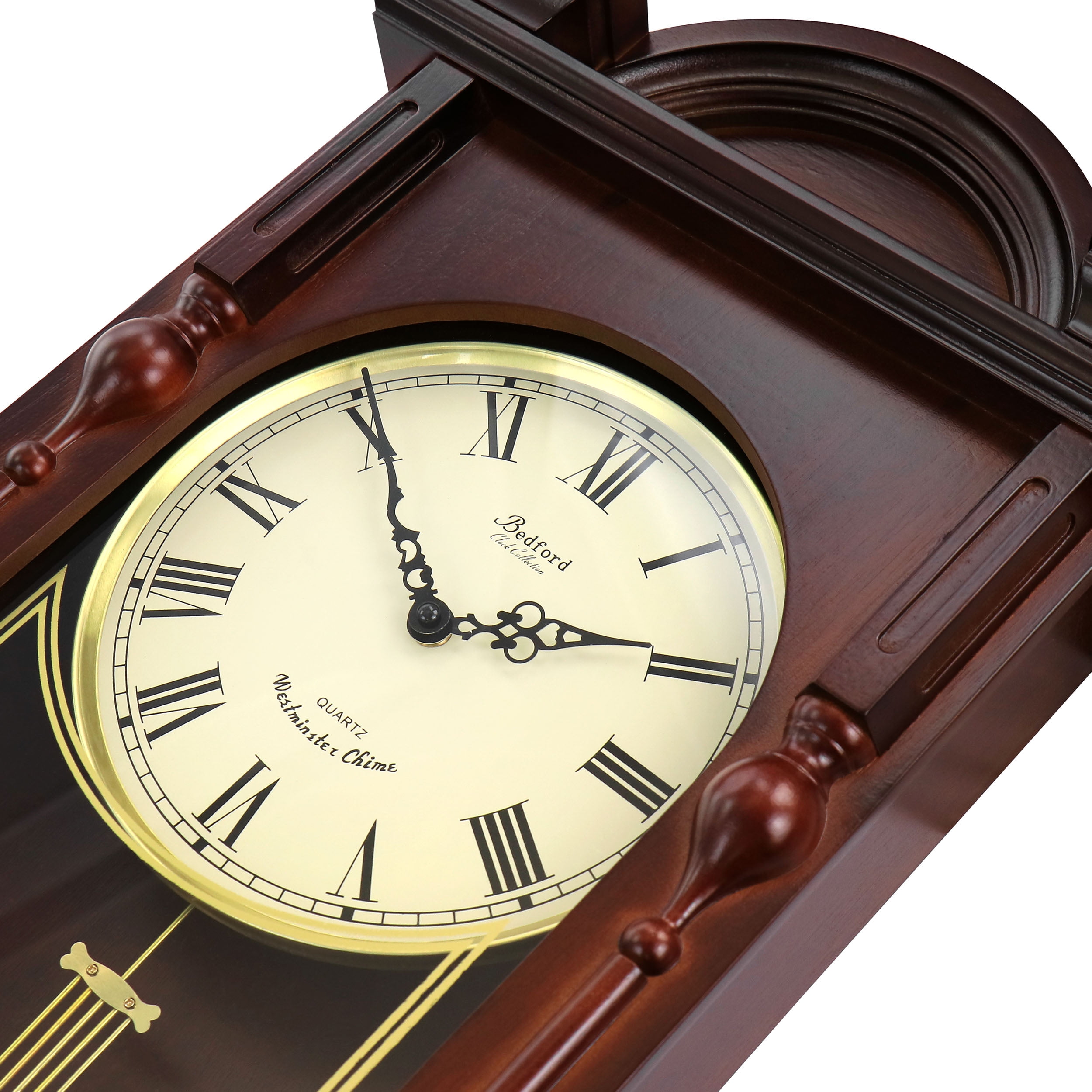 Bedford Clock Grand 31 inch Analog Chiming Pendulum Wall Clock in Mahogany Cherry