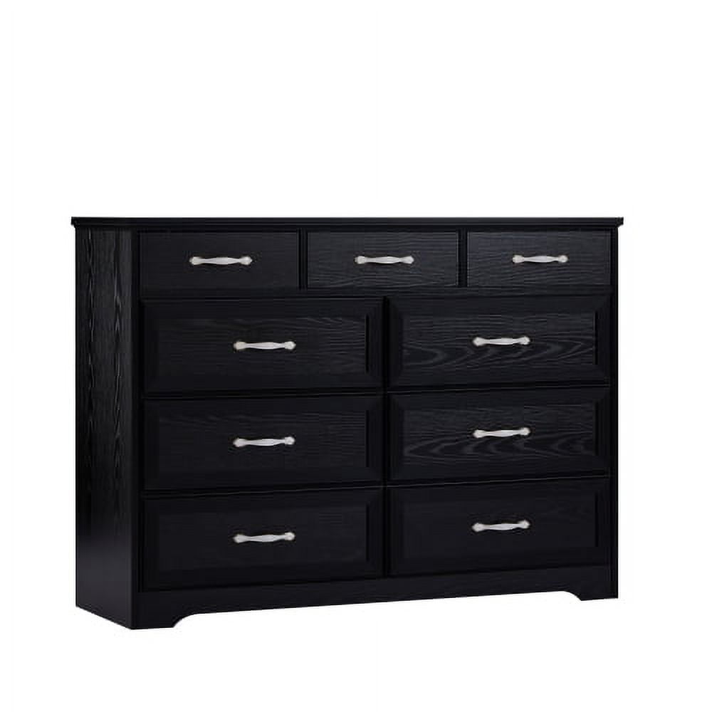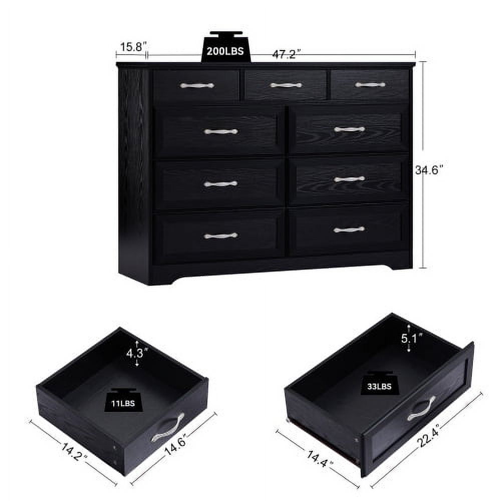 Bedroom dresser, 9 drawer long dresser with antique handles, wood Chest of Drawers for Bedroom, living room, entry and hallway, Black, 47.2”W x 15.8”D x 34.6”H