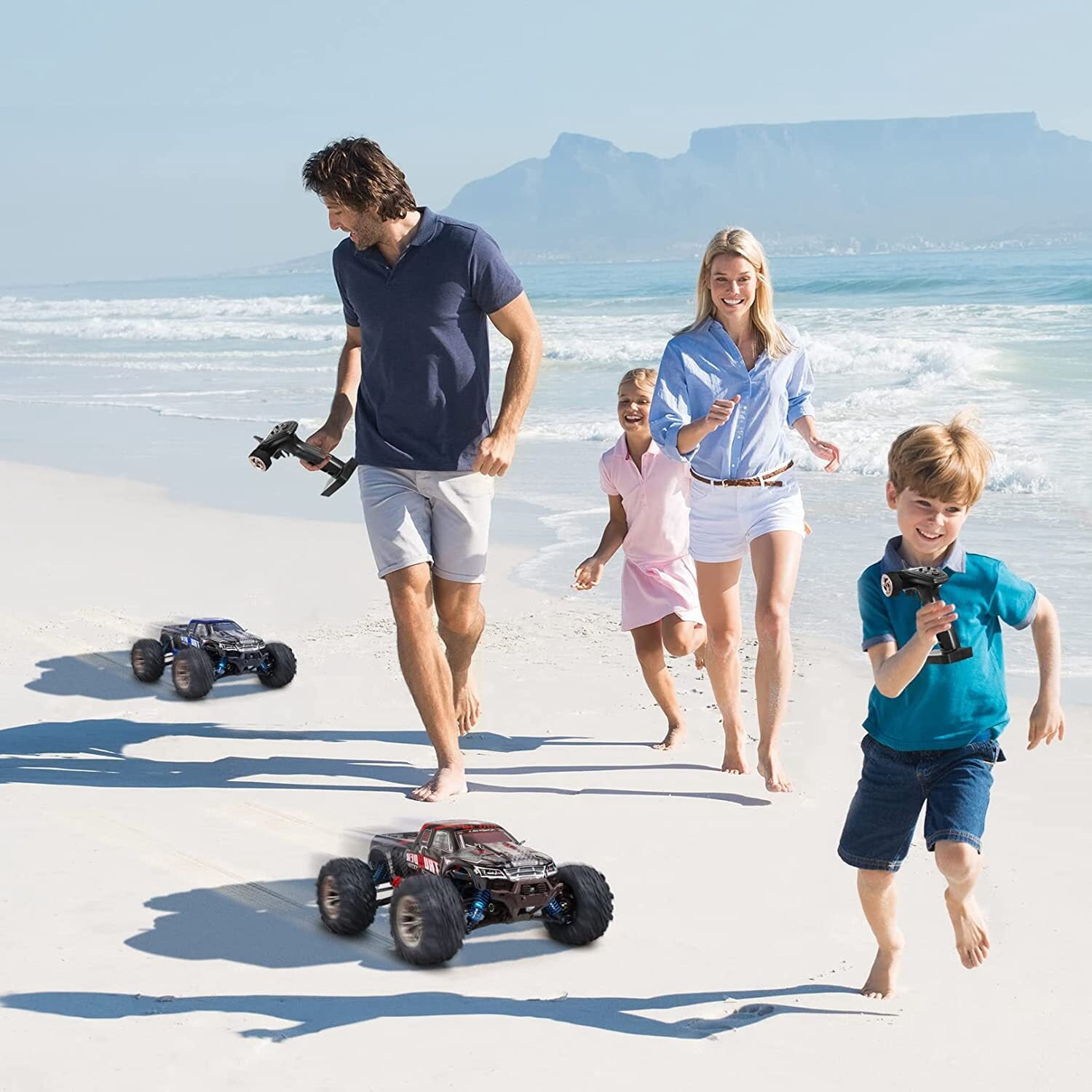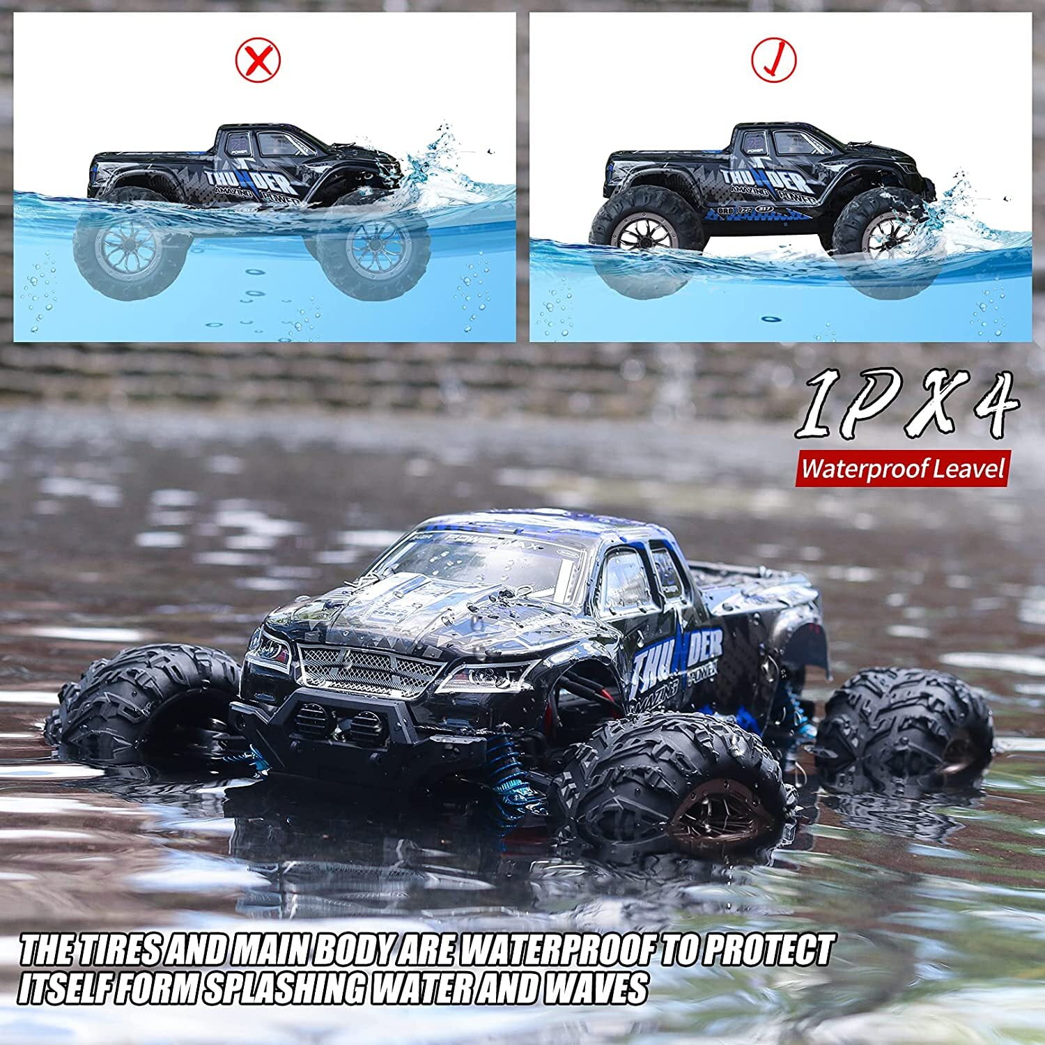 ?1:16 Fast Brushless RC Truck?The rc cars for adults with a powerful brushless motor, the rc trucks can reach a faster speed.The brushless motor lasts 2-3 times longer and consumes only 1/3 of the power of a brushed motor. ?4X4 & 55+KM/H Super Fast?:The fast rc car can reach 55+km/h,which makes the car race faster than others.The remote control truck adopts 4-wheel drive and 4 independent suspension spring shock absorbers and an alloy drive shaft. ?Double Shell & 2 Batteries?: These monster trucks for boys come with two 7.4V/1200mAh high-capacity rechargeable batteries and two charging cables. The remote control car for boys 8-12 will run for 20 minutes per battery. 2 batteries for 40 minutes running! ?IPX4 Waterproof & 2.4GHz Non-Jamming?The 2.4GHz remote controller has a fast response time and no delay. Whether indoors or outdoors, it can control the remote control monster truck sensitively and has an anti-interference function. And the rc trucks for adults also have IPX4 waterproof performance. ?Ideal Gifts Toys for Adults & Kids?:This remote control car for adults has two headlights and four high tenacity tires. And the fast remote control cars will add a lot of fun for you and your family. It is the great birthday and Christmas gifts for boy & kids over 8-12 years old, adults and off-road enthusiasts.