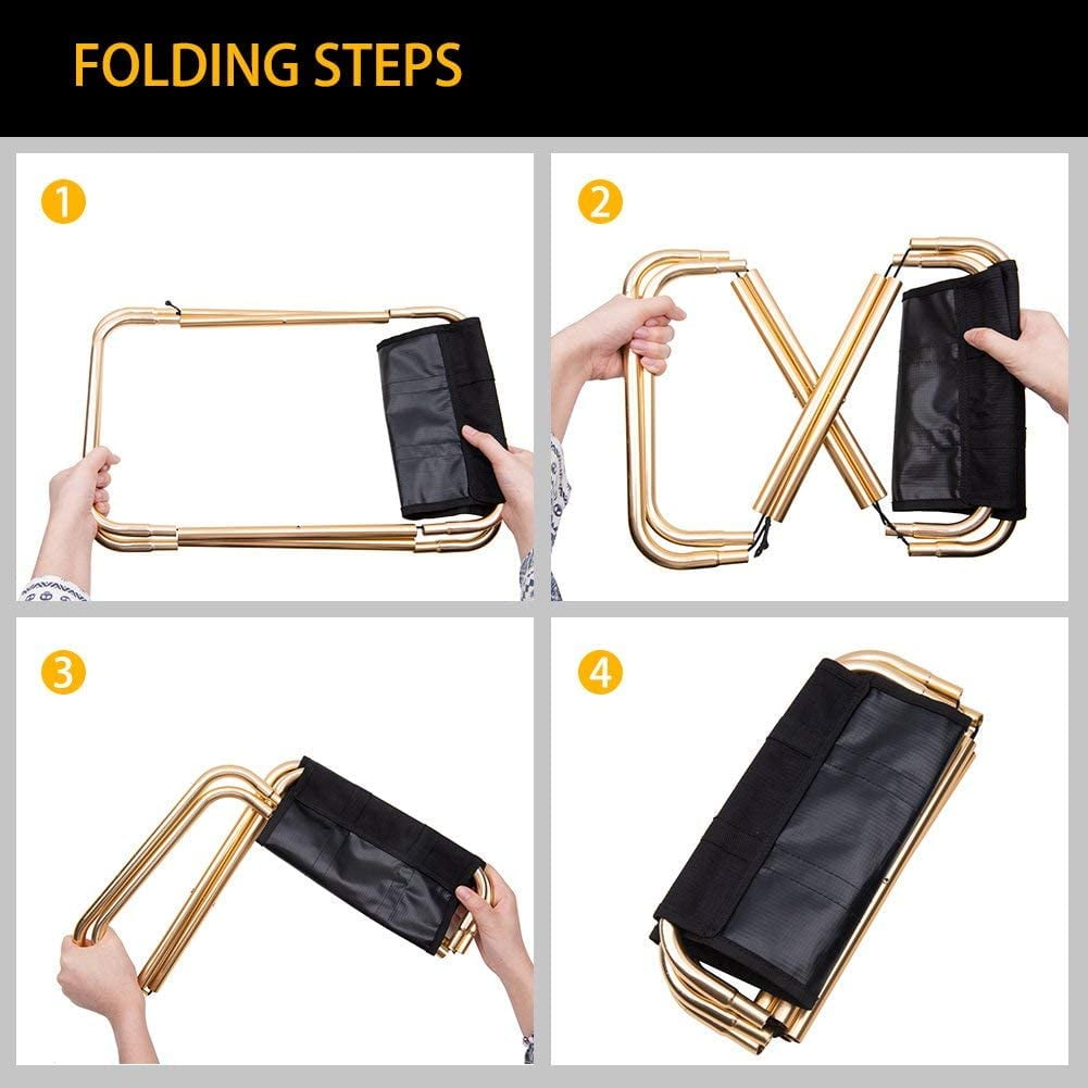 BeGlory outdoor adventure accessories: 1. Why Folding Camping Stool? Extremely compact and portable. Super lightweight. Strong and durable construction Extremely compact and portable. It is compact and fits easily in your backpack, carry-on luggage! Whether you are standing in a queue, taking a hike, taking multi-day backpacking, finishing the tour, or just relaxing on your patio, this folding chair is just what you need. Super light. This stool is super light: only 265 g. This means that you can easily take this stool with you on a long hike/backpacking trip! Strong and durable construction We use the highest quality material for this stool: AeroSpace aluminum alloy frame and strong oxford color. All this means a more robust stool that is designed to last! Package includes: 1 x Marcos Portable Folding Chair 1 x Storage Bag Specifications: Size: 248mm(9.64In) x 225mm()8.86In) x 270mm(10.63In) Weight: 265g Frame: aerospace aluminum alloy Seat cover: Oxford Maximum load: supports up to 250 pounds of seat weight.