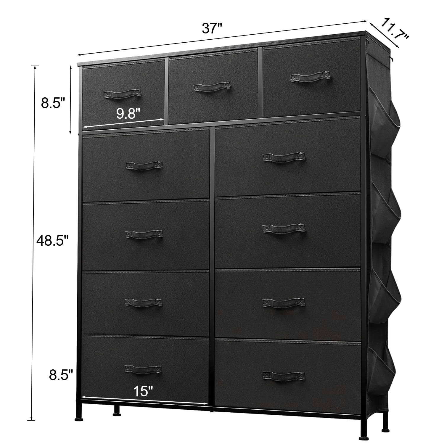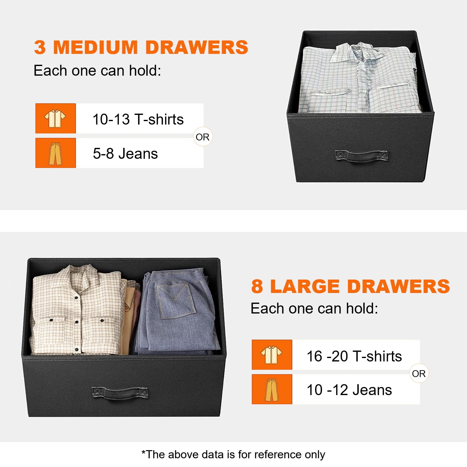 Behost Fabric Storage Dresser with 11 Drawers, Steel Frame and Wooden Top for Bedroom, Closet, Entryway and Nursery,Black