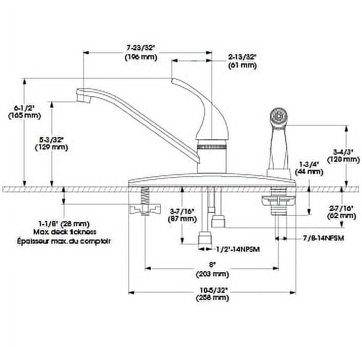 The Belanger Sink Faucet will upgrade your kitchen’s functionality and decor with its solid brass body and polished chrome finish. The design features a zinc cover plate and stainless-steel ball cartridge for extra durability. The 8″ low-arc spout swivels, making it easy to direct the sink stream wherever you need it. The handle with side spray extends your reach to take the hassle out of washing dishes. The faucet utilizes a 4″ centerset installation and can accommodate a mechanical pop-up lift rod, making the fixture a convenient fit for your sink. With a maximum flow of 8.3 l/min at 60 psi, this faucet provides an ideal amount of water. For over 95 years, Keeney & Plumb Pak have been manufacturing brass and plastic under sink repair parts, quarter turn valves, bath drains, toilet repair parts, and more. Now we bring a touch of elegance to your home with our designer collection, featuring Stylewise and Belanger. From shower fixtures to kitchen and bathroom faucets, Keeney offers affordable beauty at a high standard of quality.
